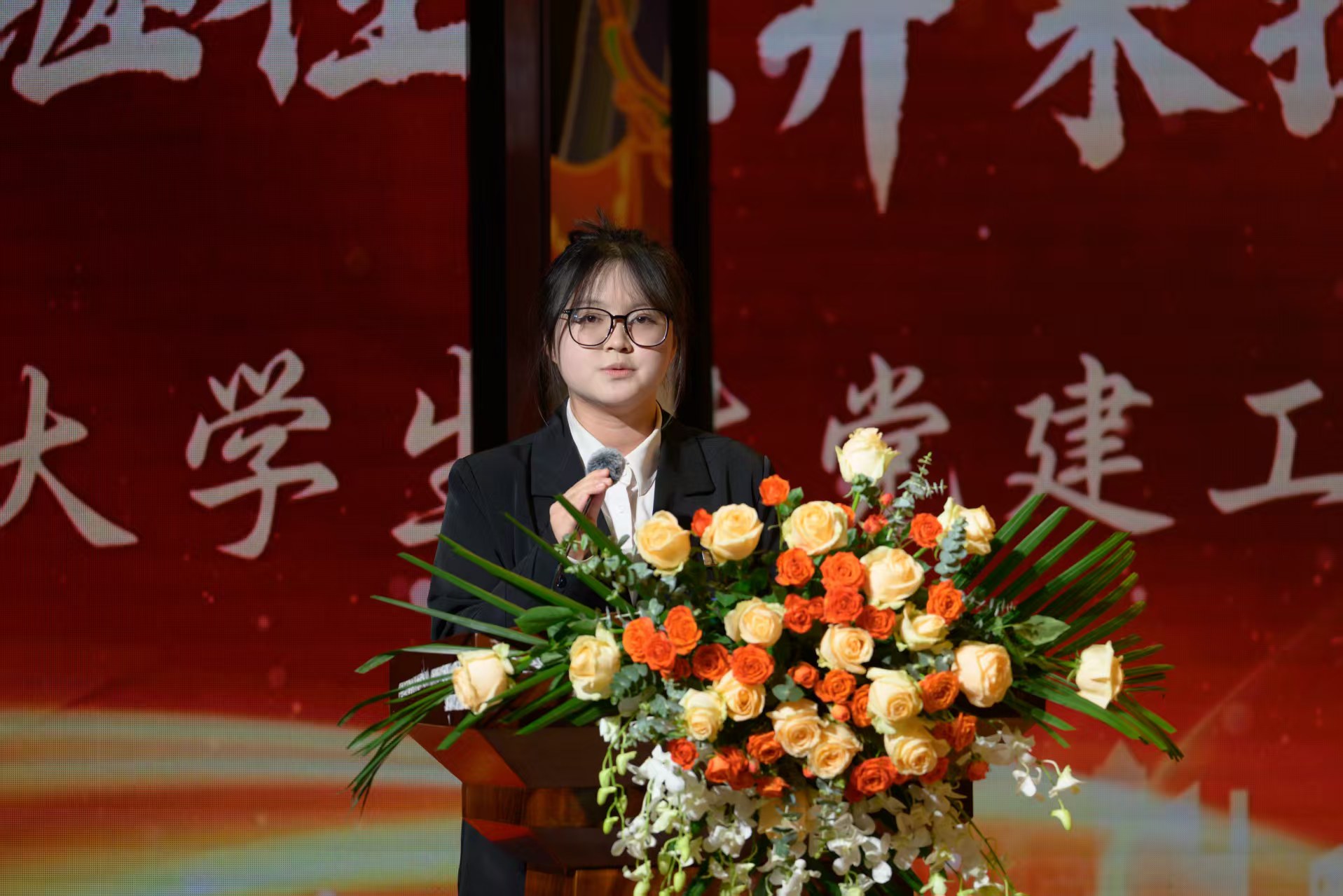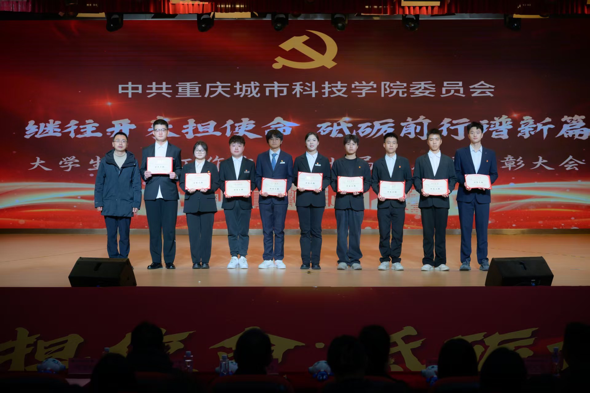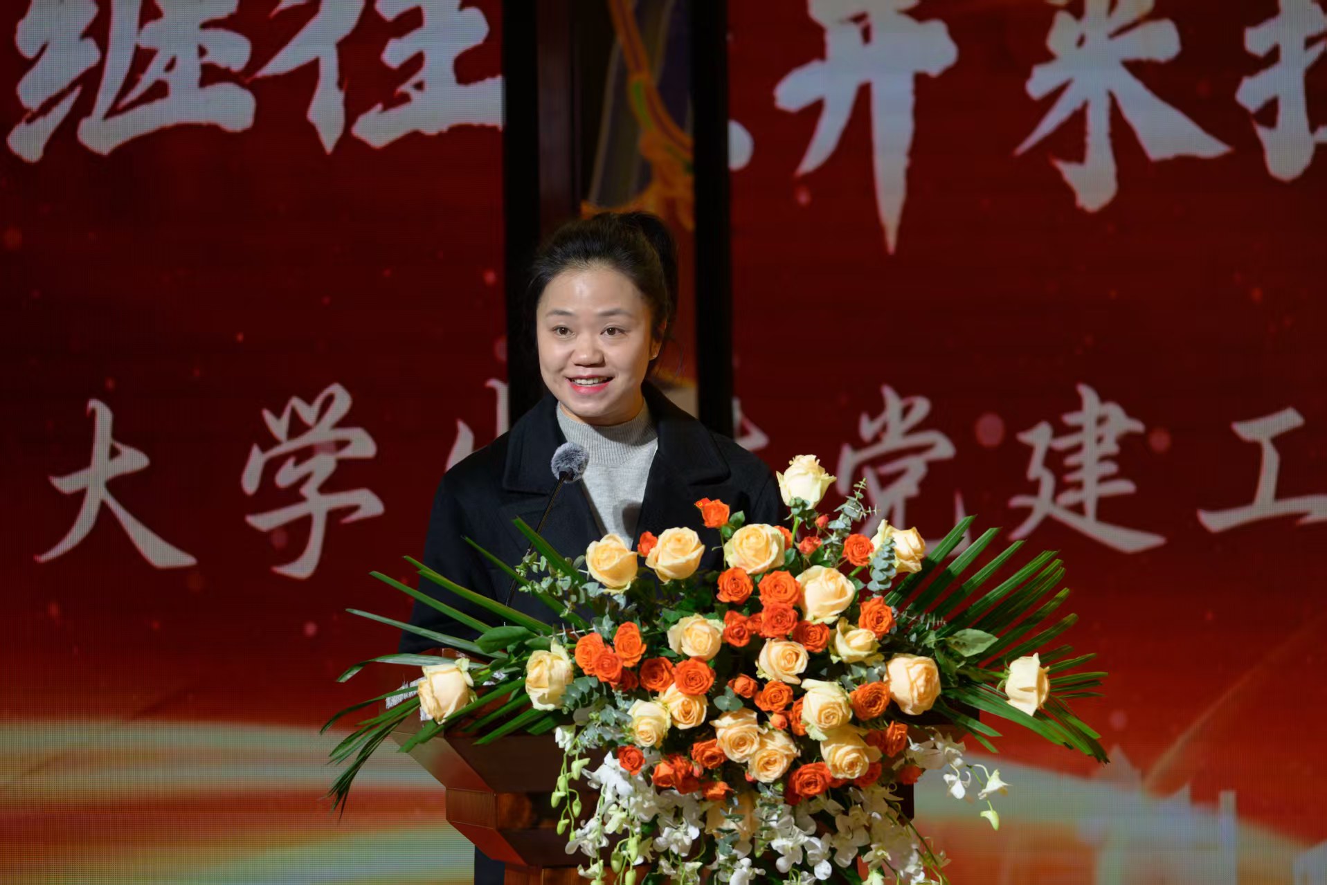 为进一步加强大学生党建工作中心队伍建设,传承红色基因,凝聚青春力量,确保工作平稳有序衔接、持续高效推进。2025年12月16日,重庆城市科技学院第七届大学生党建工作中心(以下简称中心)换届暨表彰大会于永川校区第一报告厅开展。学校党委书记、政府督导专员王银峰,学校党委宣传部部长彭晓,学校党委组织部部长刘茜,马克思主义学院党总支副书记涂佳,经济管理学院党总支副书记周德顺,艺术与传媒学院党总支副书记宾光勇,中心及各分中心指导老师,全体中心成员及各分中心学生代表参加本次大会。此次大会由张爽,李文博,曹溢淋,张晓雅主持。 第一篇章 薪火赓续 青春筑梦 一、奏唱《国歌》 大会伊始,全体起立奏唱《中华人民共和国国歌》 二、领导致辞 大会第二项议程,由党委宣传部部长彭晓为本次大会致辞,他勉励中心及各分中心成员,要以奋进之姿勇担时代使命,在城科的沃土上绽放青春芳华,向着崇高理想与奋斗目标笃定前行;要秉持实干笃行的精神,深耕学习与工作岗位,以创新实践赋能工作提质增效,切实履行服务中心发展的职责,真正做到以知促行、以行践知。 三、观看《2024-2025学年工作回顾》 四、第七届中心骨干代表发言 大会第四项议程,由第七届中心骨干代表韩贵川发言,他回顾了第七届中心成员在理论学习、实践服务、自身建设等方面的成果,分享了以坚守初心、服务师生、团队协作、创新实干为核心的经验。表达了对第八届成员的殷切期望,勉励新一届成员接续奋斗,为学校发展贡献力量,并送上了美好祝福。 五、为第七届中心骨干代表颁发聘书 随后,中心指导老师马煦玥为大学生党建工作中心第七届干部颁发聘书,一份份聘书,不仅是肩上的责任,更凝聚着对中心干部们辛勤付出的肯定与赞誉。 往昔耕耘结硕果,未来逐梦启新程。由衷祝贺大学生党建工作中心及全体成员过往所取得的优异成绩,也向他们的不懈努力与无私奉献致以诚挚的感谢。 六、宣读《2024-2025学年优秀工作 者的表彰文件》 大会第六项议程,由大学生党建工作中心指导老师冯梅宣读《2024-2025学年优秀工作者的表彰文件》。 七、为优秀工作者和先进集体颁奖 艺术与传媒学院党总支副书记 宾光勇 为学习标兵颁奖 艺术与传媒学院党总支副书记 宾光勇 为优秀干事颁奖 经济管理学院党总支副书记 周德顺 为优秀干事颁奖 经济管理学院党总支副书记 周德顺 为优秀干部颁奖 马克思主义学院党总支副书记 涂佳 为优秀干部颁奖 马克思主义学院党总支副书记 涂佳 为优秀部门颁奖 学校党委书记、政府督导专员 王银峰 为先进集体颁奖 八、节目《玉盘》 由中心成员带来的《玉盘》,《玉盘》传递着中华民族古今一脉的求索精神,彰显家国雄心与逐梦热忱,展示了传统与现代融合、童真与宏大共鸣的文化传承与时代力量。 第二篇章 初心如炬 再谱华章 九、宣读《新任干部任命文件》 大学生党建工作中心指导老师易建平宣读《新任干部任命文件》,一纸任命,承载使命;一份职责,凝聚担当。愿第八届大学生党建工作中心全体成员,承续初心、笃行不怠,共同书写中心发展的崭新篇章。 十、新老干部授牌仪式 随后,由第七届干部为第八届干部授予工作牌、交接中心旗帜。这一交一接,既传递着上一届全体成员的期盼,也意味着新一届干部正式扛起了中心的工作责任。 十一、观看第八届风采创意视频 十二、第八届中心骨干代表发言 大会第十二项议程。由第八届中心主任袁晓琴发言。袁晓琴同学代表全体中心成员庄严承诺,将始终坚守加入中心的初心使命,永葆对大学生党建工作的热忱,以高标准严格要求自我,持续精进学识本领,以乐观坚韧的态度直面挑战、勇克难关。 十三、情景剧《革命之精神》 紧接着,由体育大健康学院同学带来情景剧表演—《革命之精神》,革命烈士以“舍生取义”的信仰,畅想家国光明未来,诠释共产党人“道之所在,虽千万人吾往矣”的使命,传承革命精神。 十四、领导总结讲话 最后一项议程,由学校党委组织部部长刘茜为本次换届暨表彰大会作总结讲话。刘部长对本次大会的圆满成功表示热烈祝贺,向深耕学校党务工作一线的指导老师致以崇高敬意,并向接过重任的第八届成员送上诚挚祝贺与殷切期待。回顾2024-2025学年,第七届成员在思想引领、组织建设、实践服务等领域深耕实干,以每月“理论学习会”浸润青年思想,以严谨细致的态度落实各项工作任务,以丰富多样的活动凝聚青春力量,交出了一份亮眼的答卷。刘部长强调,换届是薪火相传的纽带,青年骨干要扛起时代重任,锚定新时代青年的使命任务与责任担当,立足青年思想特点创新工作形式,善用新媒体平台扩大工作覆盖面与影响力,以理想信念为帆,以实干担当为桨,为中华民族复兴贡献青春力量。 大学生党建工作中心第七届换届暨表彰大会圆满结束! 文稿来源:钟宏鑫 梁红梅 照片来源:罗婷 梁红梅 潘芊宇 郭雨欣 石运红 刘雯莉 唐铭尉 杨锦灿 视频来源:钟宏鑫 陈妍 唐啸 夏宇潇 陶嘉辉 阳雨杉 邓佳欣 石运红 编辑:朱江玲 阳雨杉 审核:党委组织部