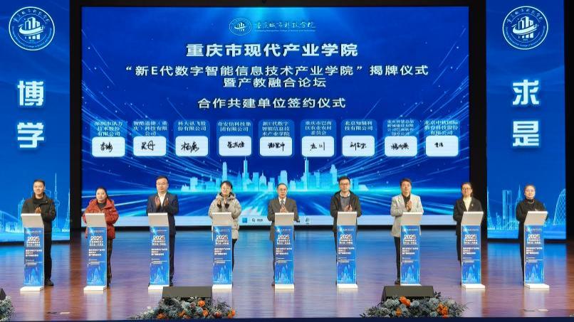 2025年11月22日上午,重庆市现代产业学院“新E代数字智能信息技术产业学院”揭牌仪式暨产教融合论坛在重庆城市科技学院巴南校区隆重举行,标志着学校在落实国家产教融合战略、推进“信息技术+农业”人才培养创新方面迈出关键一步。重庆市教委高教处干部李世辉、巴南区教委总督学潘会明、巴南区农业农村委信息中心主任杨刚,重庆城市科技学院副校长余林,校长助理、巴南校区管委会党工委书记、常务副主任崔继昌,教务处处长王颖,人工智能与大数据学院院长谢显中及学院领导、师生代表出席会议。同时,奇安信科技集团有限公司、北京知链科技有限公司、科大讯飞股份有限公司、重庆智慧总部新城建设有限公司巴南软件园分公司、智酷道捷(重庆)科技有限公司、北京中软国际教育科技股份有限公司、深圳市讯方技术股份有限公司等共建企业嘉宾应邀参会,共同见证现代产业学院揭牌。会议由人工智能与大数据学院行政院长万毅主持。 (重庆城市科技学院人工智能与大数据学院行政院长万毅主持) 重庆城市科技学院结合国家与区域经济社会和产业发展方向,对接重庆市“33618”中的现代农业领域,依托人工智能与大数据学院的软件、区块链和信息安全等技术基础,围绕农业及食品安全领域,联合软件、信息安全、区块链、人工智能和大数据等行业领军企业,获批重庆市第二批现代产业学院“新E代数字智能信息技术产业学院”。该产业学院拟通过创建集教学、科研和社会服务于一身的新型产业培养载体,构建理念先进、体制机制灵活、规模结构合理、培养体系完善的人才培养体系,促进农业“接二连三”,培育“信息技术+农业”新产业新业态,打造信息科学与农业交叉学科教育基地。 会议伊始,重庆城市科技学院副校长余林在致辞中对各位嘉宾和师生的到来表示热烈欢迎,并简要介绍了学校发展历程与办学成果。余林副校长指出,产业学院将依托软件工程、区块链工程、信息安全等核心专业,聚焦农业关键领域,联合政企研多方力量,深耕“信息技术+农业”融合沃土,不断探索产教融合新路径,为重庆及成渝地区双城经济圈建设贡献城科智慧与青春力量。 (重庆城市科技学院副校长余林致辞) 重庆市教育委员会高等教育处干部李世辉在致辞中表示,近年来市教委持续推进产教深度融合,将高校人才培养、科学研究与产业发展紧密对接,推动人工智能、大数据等现代信息技术与产业全链条深度融合。此次产业学院的成立,是深化产教融合的重大举措,将有力支撑农业现代化转型和高质量发展,为构建重庆市现代化产业体系提供坚实动能,也为区域经济社会发展注入更强的科技驱动力。 (重庆市教育委员会高等教育处干部李世辉致辞) 重庆市巴南区教育委员会总督学潘会明表示,巴南区以深化产教融合作为服务地方经济发展的重要抓手,产业学院紧密对接数字经济和智能产业发展趋势,充分结合学科专业优势与产业技术优势,着力实现高素质技术技能人才培养、产学研用深度融合、服务区域经济社会发展三大目标,为巴南区乃至重庆市的数字智能产业发展提供坚实的人才支撑和智力支持。 (重庆市巴南区教育委员会总督学潘会明致辞) 重庆城市科技学院校长助理、巴南校区管委会党工委书记、常务副主任崔继昌宣读现代产业学院合作共建单位成员名单。随后,各合作共建单位代表与新E代数字智能信息技术产业学院院长谢显中共同登台参与签约仪式,标志着政企校各方将在产教融合、人才培养等方面构建深度紧密的合作关系。 (重庆城市科技学院校长助理、巴南校区管委会党工委书记、常务副主任崔继昌宣读合作共建单位名单) (签约仪式) 北京知链科技有限公司总经理刘全宝作为现代产业学院合作共建单位代表发言。刘全宝总经理表示北京知链科技有限公司将与现代产业学院携手深化产教融合,积极推动平台资源、技术成果、实训基地等方面的共享协同,并在技术研发、人才培养和产业应用等方面开展更高水平的合作,推动现代产业学院建设和企业发展,实现校企互促共赢,共同构建人才培养与产业发展相互促进的新生态。 (北京知链科技有限公司总经理刘全宝发言) 重庆市教育委员会高等教育处干部李世辉,重庆市巴南区教育委员会总督学潘会明,重庆市巴南区农业农村委员会信息中心主任杨刚,重庆城市科技学院副校长余林,新E代数字智能信息技术产业学院代表赵腾飞,教务处处长王颖共同为重庆市现代产业学院“新E代数字智能信息技术产业学院”揭牌,标志着现代产业学院建设进入全新阶段。 (揭牌仪式) (师生观看揭牌仪式) 揭牌仪式结束后,以“共建现代产业学院,共促‘信息技术+农业’深度融合”为主题的产教融合论坛于10:30在巴南校区博学楼106会议室顺利举行。本次论坛特邀重庆市产业技术带头人、重庆市集成电路现代产业学院院长、重庆市集成电路协同创新中心主任、重庆市微电子器件与集成电路系统工程技术研究中心主任、重庆邮电大学集成电路学院党委书记张红升教授,奇安信科技集团有限公司高校合作中心产教融合解决方案总监屈万勰,重庆市移动互联网数据应用工程技术研究中心主任、重庆市产业技术带头人、重庆邮电大学文峰传邮学者、重庆邮电大学计算机学院副院长、教授级高工蒋溢,科大讯飞股份有限公