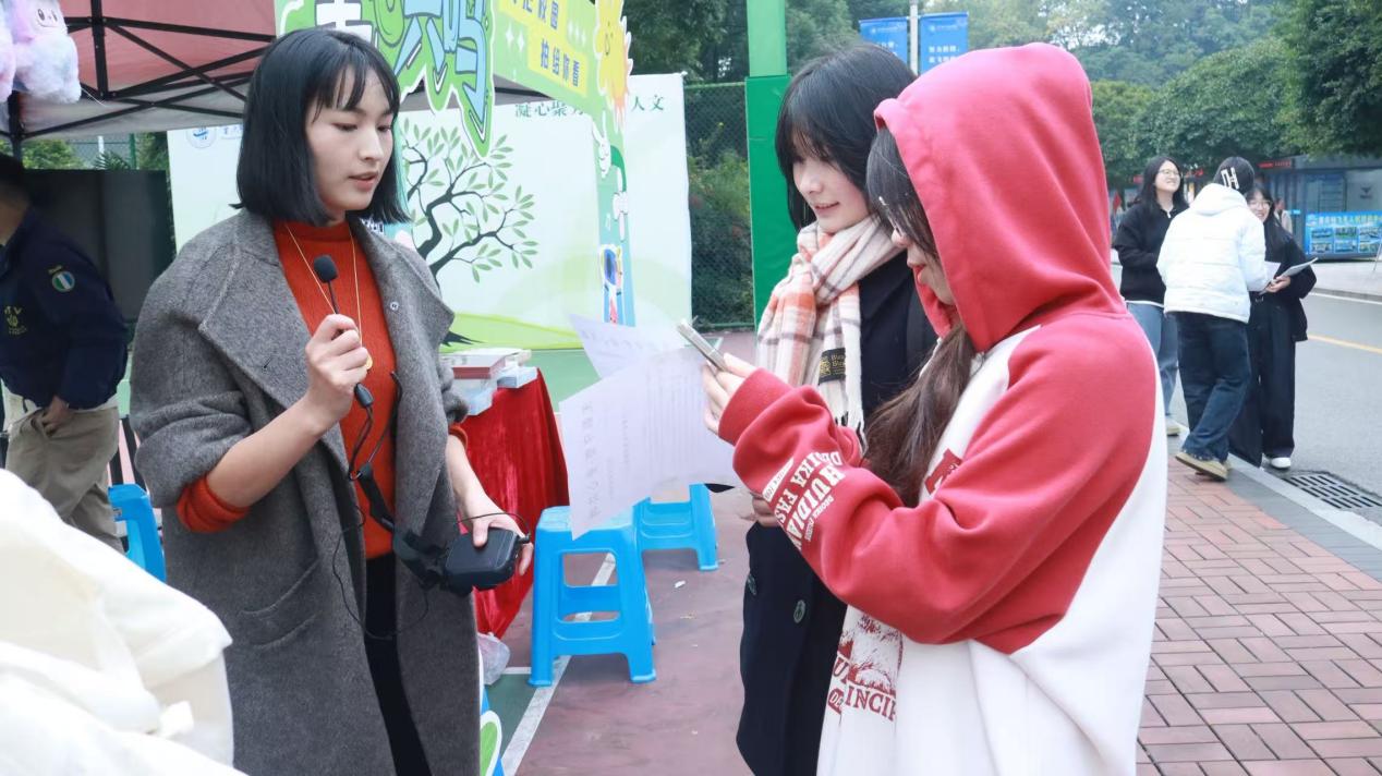为搭建校园与山区留守儿童的情感桥梁,传递青春温暖与社会关怀, 11月24日,由重庆儿童救助基金会童心成长爱心基金与重庆城市科技学院人文学院联合主办的“我把校园拍给你看”公益活动在AB栋篮球场温情启幕。活动以摄影为纽带、以爱心为内核,吸引了大批学子踊跃参与,用镜头定格校园美好,用行动点亮留守儿童的纯真期盼。 活动现场设置了多元互动环节,充满青春暖意与公益情怀。千纸鹤祈福区前,同学们围坐成圈,指尖翻飞间,一张张彩纸被折成形态各异的千纸鹤用笔书写下简短的祝福暗号,每一只都承载着美好期许。镜头前的同学们手握小红花,用它承载每一份真情。DIY手工区里,大家发挥创意巧思,制作精美发卡,用这些工艺品寄托对留守儿童的关怀情感。 寄语书写处,同学们拿起笔在纸条上写下走心话语,字句里满是真诚与鼓励,知识大转盘也充满了欢声笑语,同学们踊跃抢答,在轻松互动中深化对公益事业的理解,也让爱心传递更具知识性与趣味性。此外,承载着无数寄语的梦想树作为视频录制区始终人气高涨,同学们对着镜头自信表达。 经管学院的同学写下祝福,愿他们能走出当下的困境,迈入更广阔的天地,用努力拥抱理想。人文学院的同学祝愿小朋友们能天天开心,茁壮成长,考上理想的大学,成为想要去成为人。人工智能与大数据学院的同学们希望小朋友们能感受当下科技的发达,在将来也能靠自己的双手创造出改变世界的智能科技。数不过来的温暖问候、一段段真挚祝福,通过镜头被定格成珍贵的影像。 这场跨越千里的心意奔赴,早就不只是简单的物资帮忙。校园里的那些瞬间,藏着我们对知识的珍惜、对青春的热乎劲儿、对生活的满心欢喜,更装着心里那份朴素实在的想法。每一份支持、每一句留言,每一次参与,都是给留守儿童最真诚的牵挂和温暖。 此次活动积极发挥了城科学子的青春力量,以生活化的方式搭建公益桥梁,既让留守儿童感受到社会关怀,也让大学生在实践中深化责任担当,传递向上向善的社会风尚。(舒中莹/图 龚欣怡/图 成思亚/图 王楠/文 卢沼汐/文 杨灿/文 传媒中心 易雪/编辑)