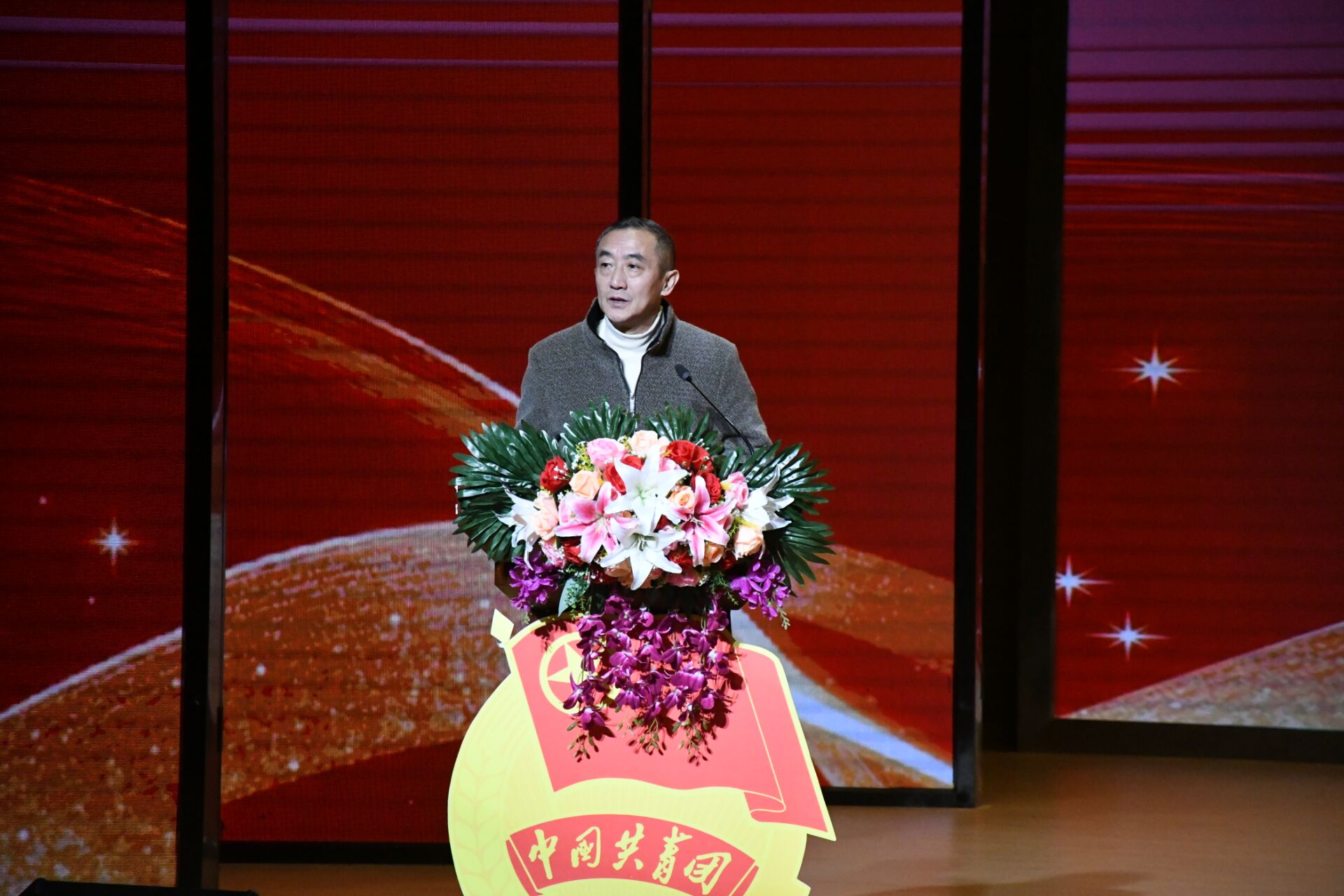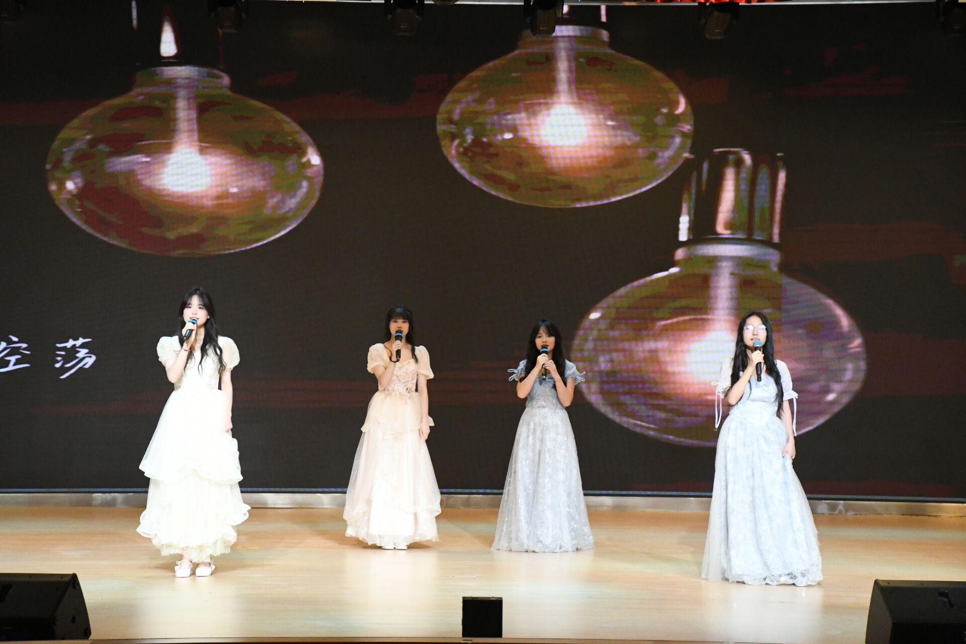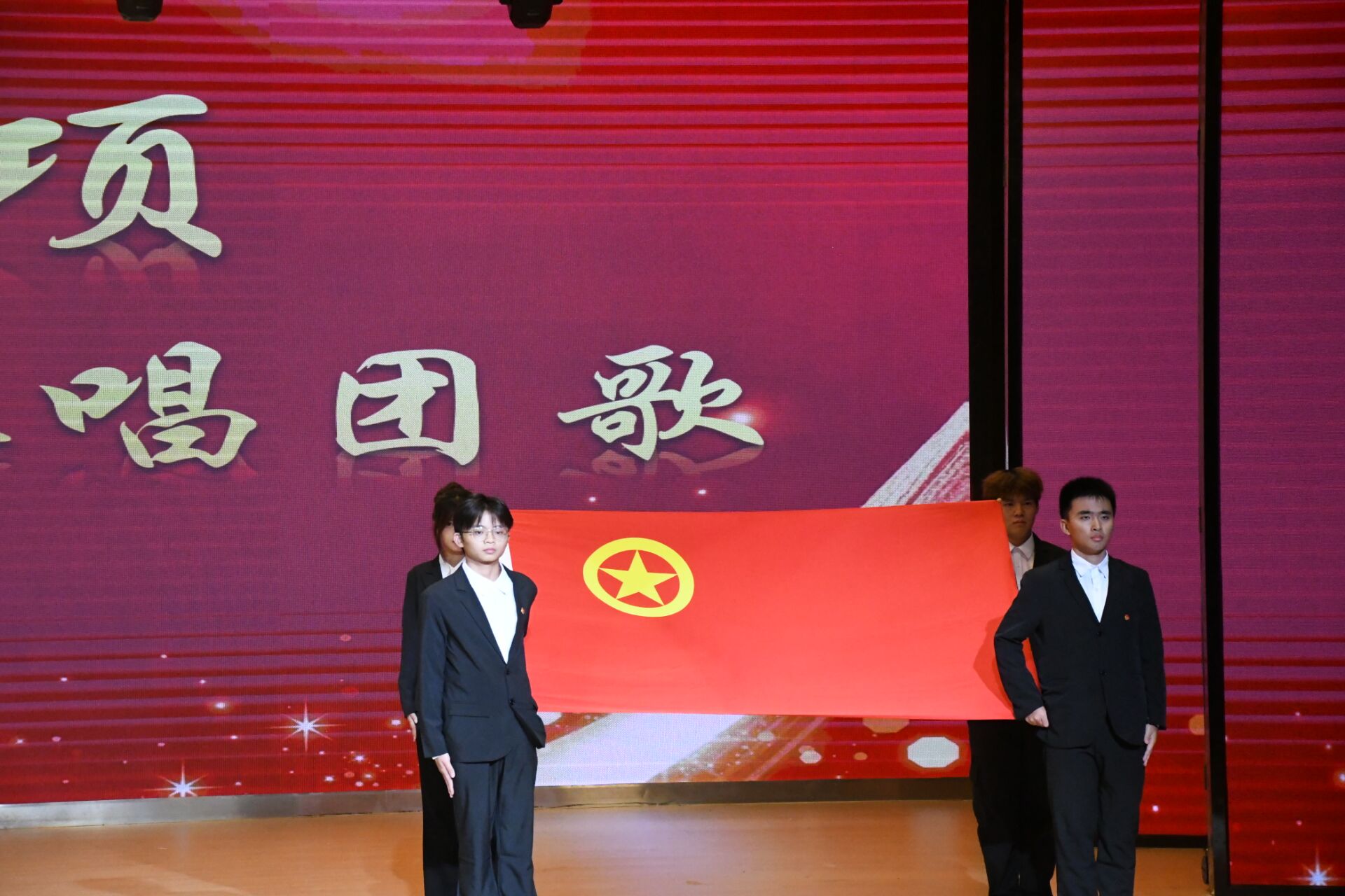 鲜红的团旗于激昂旋律中缓缓展开,在灯光下熠熠生辉。全体成员肃立齐唱《光荣啊,中国共青团》,恢弘的旋律承载着信念的重量,深深叩击着每一位学子的心弦