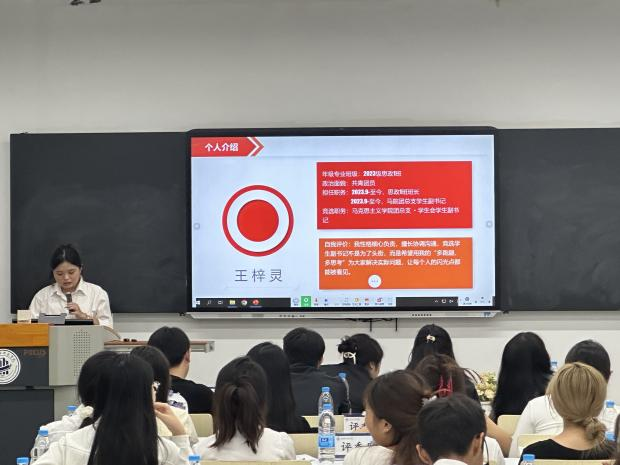 为传承使命担当,激发团学组织新活力,推动马克思主义学院学生组织的可持续发展,马克思主义学院于2025年9月17日在五教402教室开展第三届团总支•学生会骨干竞选。马克思主义学院团总支书记王乙岚、团学指导老师吕瑞出席,第二届团学书记处、主席团成员及各团学部门骨干代表担任评委,由学生副书记袁艳秋主持。 本次竞选以“竞选演讲+现场答辩”形式开展。演讲环节中,各位竞聘者围绕自我介绍、个人优势、工作经历、规划蓝图等方面展开阐述,展现从容自信的风采。在现场答辩环节,评委们根据竞聘者的演讲内容以及团学工作实际需求进行提问,涵盖组织协调能力、活动策划经验、突发事件处理等多个方面。竞聘者们冷静思考、积极应答,充分展现出扎实的知识储备和灵活的应变能力。整个竞选过程紧张有序,既为同学们提供了展示自我的平台,也让评委们全面深入地了解了竞聘者的综合素质。 此次竞选不仅为同学们提供了一个展现自我、提升能力的宝贵机会,更在马克思主义学院内部营造了一种积极向上、勇于担当的良好氛围。这种氛围激励着更多同学主动参与到团学工作中来,为马克思主义学院的发展贡献自己的力量。同时,通过此次竞选,马克思主义学院也发掘了一批有能力、有担当、有热情的优秀学生,为团总支•学生会注入了新鲜血液,为今后各项工作的顺利开展奠定了坚实基础。(林隆富、陈思君/图 莫玉鑫/文 传媒中心 高晓兰/编辑)