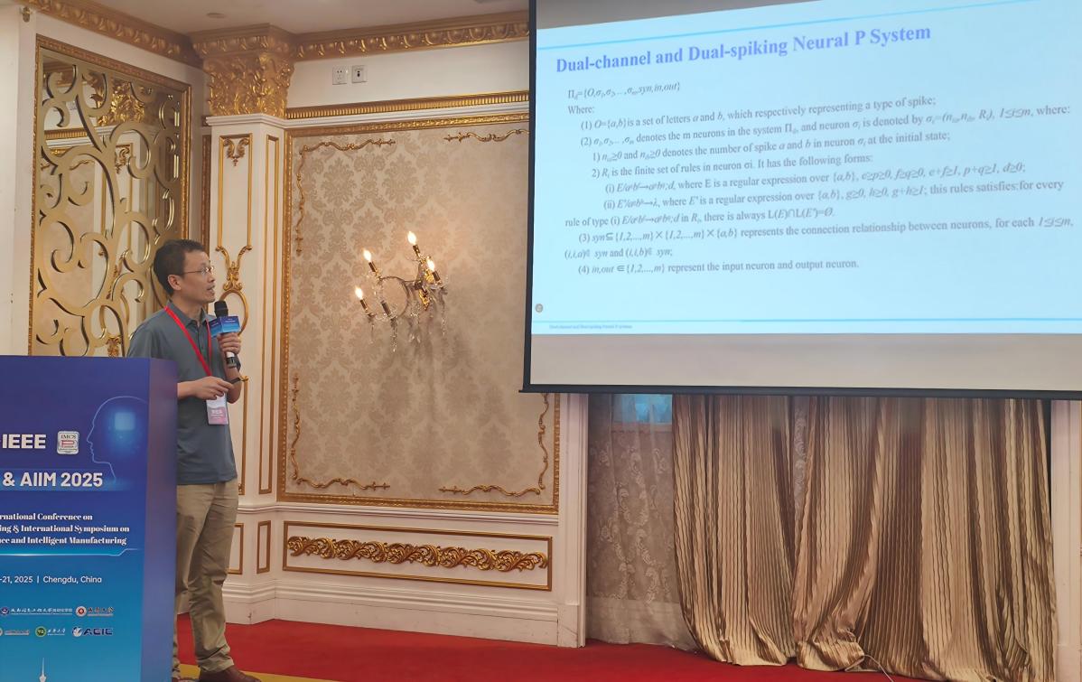 近日,2025年国际膜计算会议(ICMC2025)在四川成都顺利召开。重庆城市科技学院人工智能与大数据学院膜计算科研团队应邀出席会议,并通过口头报告形式向国际学术界展示了题为《Dual-channel and Dual-spiking Neural P systems for Logical Expression Calculation》的最新研究成果,充分彰显了该团队在膜计算领域的科研实力与创新水平。 本次会议由成都信息工程大学主办,成都信息工程大学自动化学院承办,成都大学、西南石油大学电气信息学院、四川轻化工大学、西华大学、AEIC学术交流中心共同协办。会议秉持"学术交流、增进友谊、创新发展"的宗旨,成功搭建了一个聚焦膜计算、人工智能与智能制造领域的跨学科、国际化高端学术交流平台。 (会议现场) 会议汇聚了来自意大利、西班牙、阿联酋、匈牙利、菲律宾、英国等多个国家及中国的顶尖专家学者,包括IEEE Fellow、前IEEE SMC意大利分会主席Giancarlo Fortino教授,欧洲科学院院士Mario de Jesús Pérez-Jiménez教授,IEEE Fellow Mohsen Guizani教授等国际权威人士。会议通过大会报告、特邀报告、口头报告等形式,共享科研成果、探讨前沿趋势,推动相关领域的学术繁荣与技术创新。 (参会学者) 在口头报告环节,张宏森老师作为学院膜计算科研团队的代表,围绕“逻辑表达式计算的双通道双脉冲神经P系统”主题展开阐述。报告详细介绍了双通道双脉冲神经P系统模型设计,计算逻辑表达式的P系统架构,通过实际案例验证了系统的有效性,并对系统的性能进行了综合分析。该项研究中形成的并行运算设计方法可迁移至其他计算模型优化中,为解决实际工程问题提供了新思路。 (张宏森老师作报告) 该报告内容引发了与会学者的广泛关注。在随后的现场交流环节,多位中外学者与张宏森老师围绕系统的技术实现细节、应用场景拓展路径及后续优化方向等问题展开深入探讨,现场形成了良好的学术互动氛围。此次报告不仅标志着学院膜计算团队科研成果首次登上国际学术舞台,也为与全球膜计算领域领军研究团队建立深度学术合作关系提供了重要契机。 学院膜计算科研团队长期致力于膜计算及其交叉领域的前沿研究。此次受邀参加ICMC2025国际会议,是团队主动对接国际学术前沿、深度融入全球科研网络的重要实践。通过参与这一高水平国际会议,团队不仅及时获取了膜计算领域的最新研究动态与发展趋势,为后续科研方向调整提供了参考;更通过与国际顶尖学者的交流,明确了现有研究的优势与改进空间,为团队后续科研工作的深化奠定了基础。此次报告展示,不仅提升了重庆城市科技学院在国际学术界的影响力,也是学校推动学科建设、鼓励科研团队"走出去"的重要成果。(传媒中心 易雪/编辑)