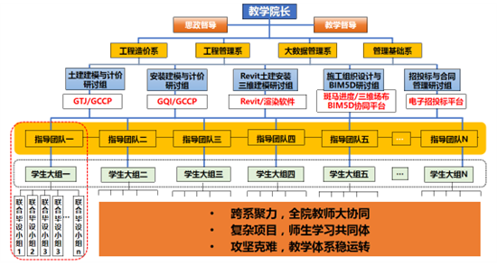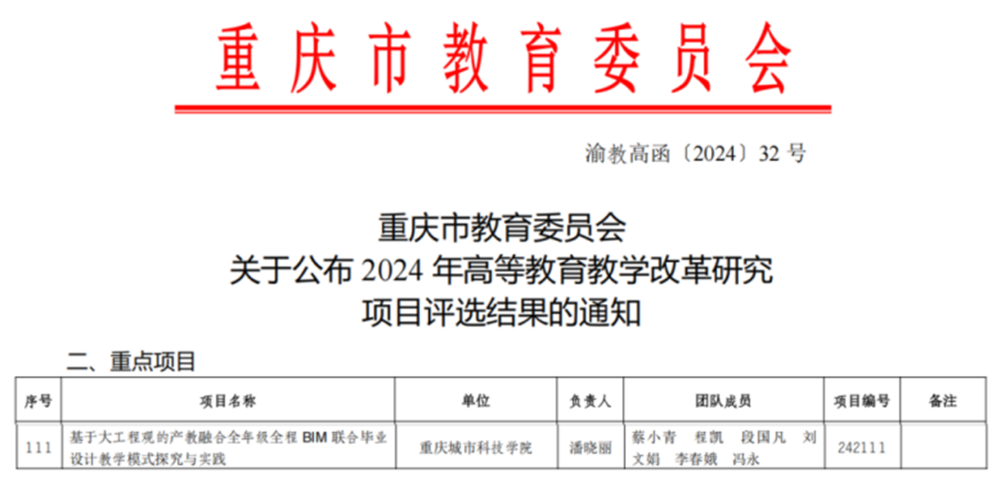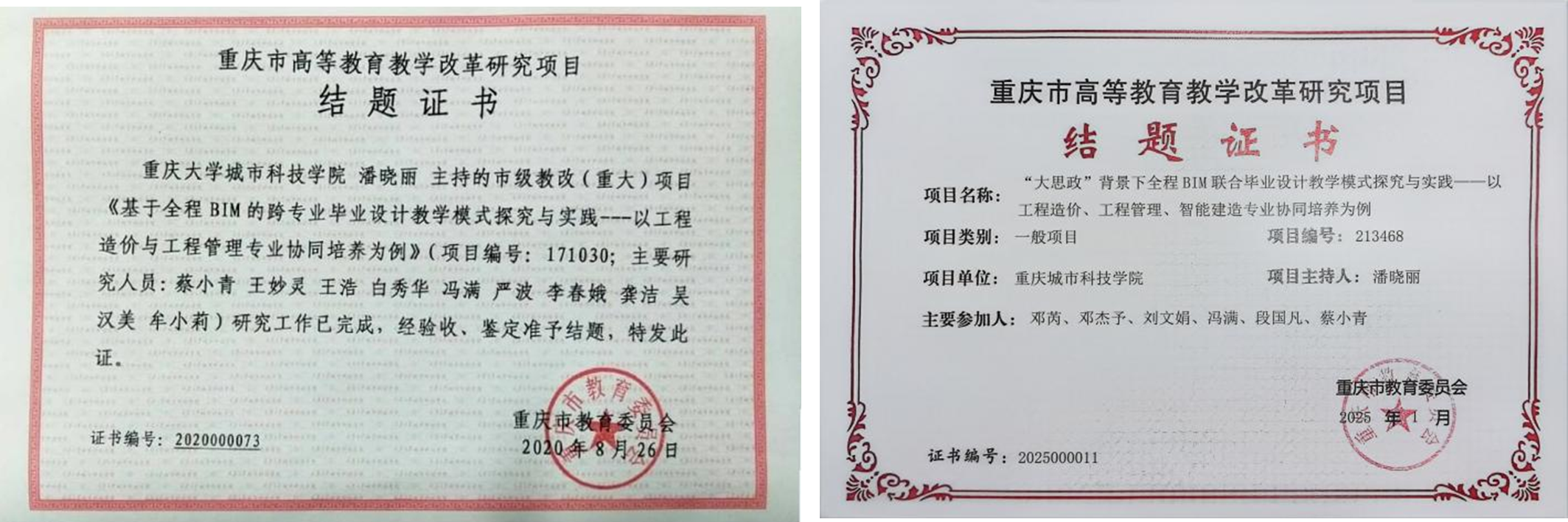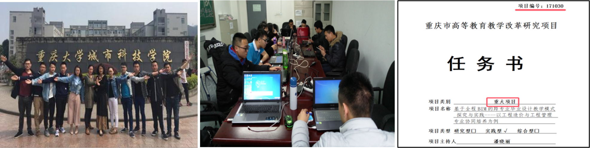 近日,教育部正式公布第三批国家级一流本科课程认定结果,重庆城市科技学院建筑管理学院潘晓丽老师主持的《毕业设计(全程BIM跨专业联合)》课程历经全国性专家网评后脱颖而出,成为学校一流建设向更高更强迈进的突破性里程碑。作为本科人才培养中的集中实践必修课和整个课程体系的“压轴环节”,该课程面向建筑行业数字化战略,突破传统模式,以“全程BIM + 跨专业联合”为核心特色,构建“师生学习共同体”,通过“校校+校企”联动和真实项目驱动,深度融合BIM、大数据、智慧运维等前沿技术,实现多专业协同和建筑全生命周期覆盖,有效解决了传统毕业设计中跨专业协同难、数字技术融合不足与实践脱节等痛点,形成了“跨时空、跨专业、数据驱动、虚实融合”的教学新体系。 第三批国家级一流本科课程认定结果 课程负责人潘晓丽老师及10分钟说课二维码(扫码可观看) 该课程建设成果丰硕,先后获评重庆市一流本科课程、重庆市课程思政示范项目,并依托3项重庆市高等教育教学改革研究项目持续推进创新,相关改革实践亦于2025年荣获重庆市教学成果奖二等奖。这一熠熠生辉的荣誉背后,是一段关于信念、坚持、协作与创新的漫长征程,是一位教师和她的团队,用九年光阴书写的高等教育改革真实故事。 2022年重庆市一流本科课程 2023年重庆市课程思政教学名师和团队 2025年荣获重庆市教学成果奖二等奖 破冰之旅:从零出发的探索 2016年底,时任工程造价教研室主任的潘晓丽老师,敏锐洞察到建筑行业数字化转型升级对人才培养的深远影响,毅然牵头成立BIM教学改革实验小组。当时,没有现成的模板、没有成熟的平台,甚至没有太多可借鉴的经验。她和白秀华老师带着11名学生,从零出发,白天上课、晚上钻研,一步步搭建起"基于BIM的跨专业联合毕业设计"教学框架。2017年,由她主持的重庆市重大高等教育教学改革研究项目《基于全程BIM的跨专业毕业设计教学模式探究与实践——以工程造价和工程管理专业协同培养为例》正式立项,标志着课程建设进入系统探索阶段。 11人的教改实验小组 教改小组学习日常 重庆市重大教改研究项目 11人小组中的王海鹏,毕业后入职中国交建,现在非洲项目负责HSE 坚实后盾:学校与学院的全方位支持 课程建设自启动之初便获得学校与学院的长期战略支持与资源保障。在学校高水平教学改革专项经费持续投入和学院政策倾斜下,BIM实验班作为教学改革的核心试验田,获重点扶持,教学平台持续升级,校企合作深度拓展。学院统筹谋划,在团队建设、项目申报、外部资源对接等方面给予全方位支持,为该课程的持续创新提供坚实后盾。 刘学民理事长在首届BIM实验班结业典礼上讲话 不断升级的BIM实验班专用教室 九载坚守:持续创新与深化 九年来,潘晓丽老师带领教学团队始终坚持以学生为中心、以项目为驱动、以技术为支撑、以协同为主线的教学理念,持续推进课程创新与深化。 2017年底,在前期11人教改实验小组的基础上,正式组建了由15名教师和60名学生构成的BIM教改实验班(20届起更名为“BIM实验班”),对重庆市重大教改项目进行深入探索。班级建立师生学习共同体,确立“以学为主、以赛为媒、磨炼意志、培养能力”的宗旨与“主动学习、自我管理、以生促教、以师护航”的方针,并将其作为持续探索的核心试验田和先锋载体。实验班率先开展“全程BIM+跨专业”联合毕业设计模式实践,引入企业真实项目与云协作平台,通过“以赛促学、以学促教”机制,系统验证了教学内容、协同流程与评价体系的可行性,现已成功举办八届。 BIM实验班多元化教学场景 重庆大学副校长刘贵文、“巴渝学者”特聘教授李正良访问BIM实验班 BIM实验班学生前期作品 BIM实验班学生前期作品 25届BIM实验班参赛模块 哔哩哔哩网站上BIM实验班全国高校BIM毕业设计创新大赛作品汇报视频 (注:学生成果全部实现数字化交付, 99个汇报视频上传哔哩哔哩网站) 历届BIM实验班日常记录及毕业视频(扫码可观看) 自2019年起,教学团队将BIM实验班成熟的改革经验推广至全年级毕业设计环节,每年覆盖学生超过1000人,实现了从“试点探索”到“全面应用”的跨越。BIM实验班持续承担前沿教学理念与技术方法的先行试验,其成果不断反哺全院课程建设,形成“实验班创新–全院推广–持续迭代”的良性循环。基于这一扎实的改革路径,团队不断突破原有教学模式,实现了从单一专业向跨专业融合、从技术能力训练提升至“技术—思政—产教”多元育人的重大转变。 《毕业设计(全程BIM跨专业联合)》教学指导模式 八年间,潘晓丽老师连续主持三项重庆市高等教育教学改革研究项目(其中重大1项、重点1项、一般1项),依托课题对跨专业联合毕业设计的实施路径、协同机制与数字化赋能等关键问题开展系统深入研究,进一步推动了课程体系的优化与升级。 重庆市重大教改项目(2017~2020年) 重庆市一般教改项目(2021~2024年) 重庆市重点教改项目(2024年至今) 2025年,潘晓丽作为团队负责人以“全程 BIM 跨专业联合毕业设计”为主题首次参加西浦全国大学教学创新大赛,从1747支参赛队伍中脱颖而出,荣获二等奖,标志着该课程的建设成果获得全国同行认可,实现了从校内实践到全国推广的重要突破。 潘晓丽团队参加第十届西浦全国大学教学创新大赛 此项深耕多年