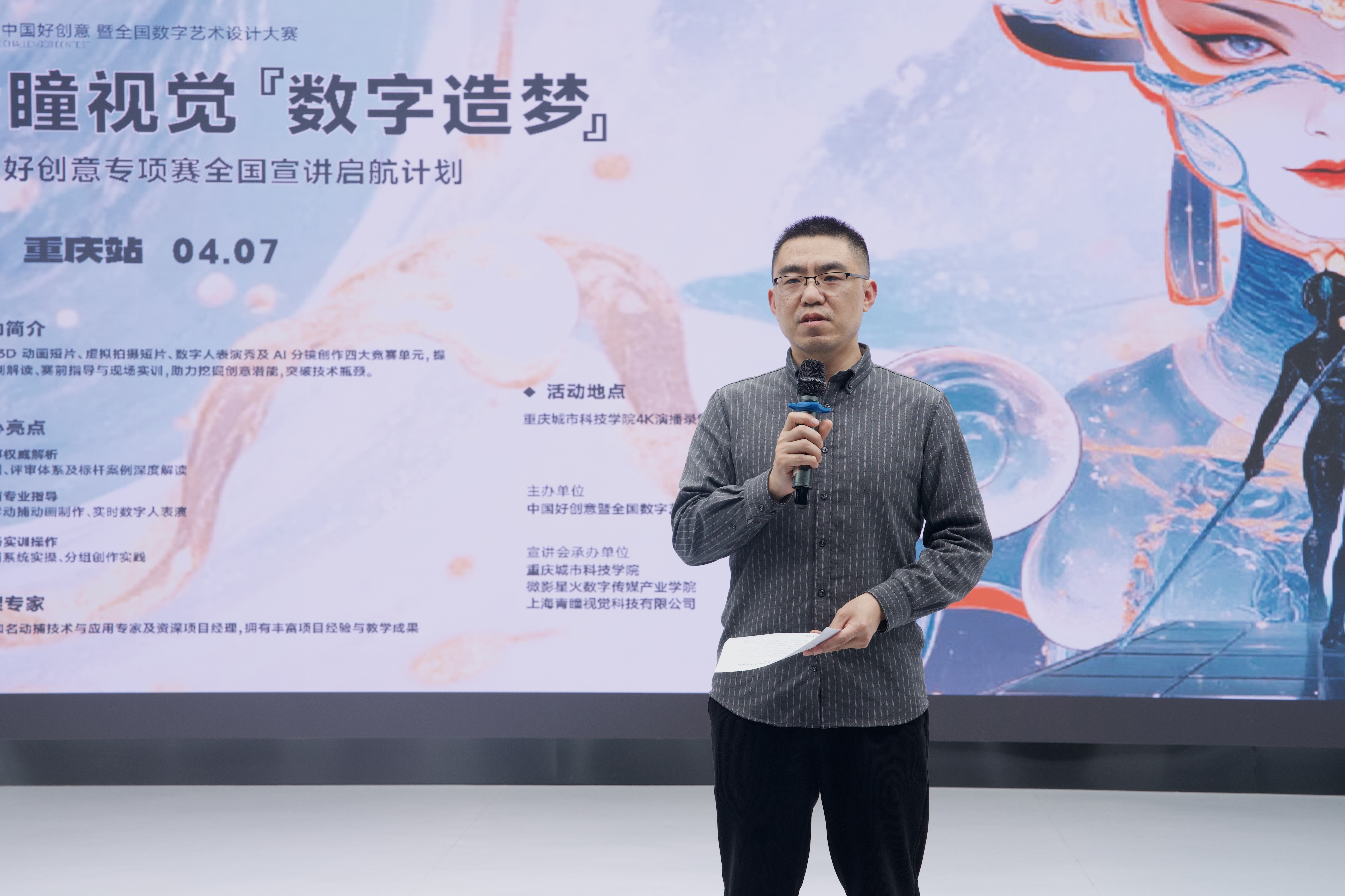 为深化产教融合,拓宽学生专业实践与竞赛视野,4月7日,重庆城市科技学院艺术与传媒学院于巴南校区4K演播厅顺利举办第20届中国好创意暨全国数字艺术设计大赛青瞳视觉数字造梦专项赛宣讲会。本次活动由重庆城市科技学院、微影星火数字传媒产业学院组织开展。 宣讲会特邀上海青瞳视觉科技有限公司青瞳视觉教育事业部商务总监杨玉龙担任主讲嘉宾。艺术与传媒学院院长助理邵文杰主持会议,摄影专业、数字媒体艺术专业赛事指导教师与学生共同参会。 宣讲会上,杨玉龙总监围绕赛事核心内容展开深度分享,从赛事发展脉络到具体参赛指引,再到优秀作品借鉴,层层递进、干货满满。他系统介绍了中国好创意大赛的发展历程与行业地位,明确该项赛事是入选教育部学科竞赛榜单的权威数字艺术赛事,而青瞳视觉“数字造梦”专项赛则聚焦光学动捕、虚拟拍摄等前沿技术,是推动艺术与科技深度融合的重要平台。结合赛事实际需求,他详细解读专项赛规则,逐一明确3D动画短片、虚拟拍摄、数字人表演秀等竞赛单元要求、参赛流程与版权存证规范,为师生梳理清晰的参赛思路。此外,他还通过历届优秀获奖作品案例拆解,直观展示动捕技术在数字创作中的应用技巧与呈现效果,为师生提供了极具参考价值的创作方向与实践经验。 在互动交流环节,师生们踊跃提问,围绕赛事选题、技术难点、作品优化方向等问题与杨玉龙总监深入探讨,现场氛围热烈浓厚。此次宣讲会不仅让师生全面了解赛事详情与行业前沿动态,更有效激发了参赛热情,为学院以赛促学、以赛促教,培养高素质数字传媒人才奠定坚实基础。(传媒中心 高晓兰/编辑)