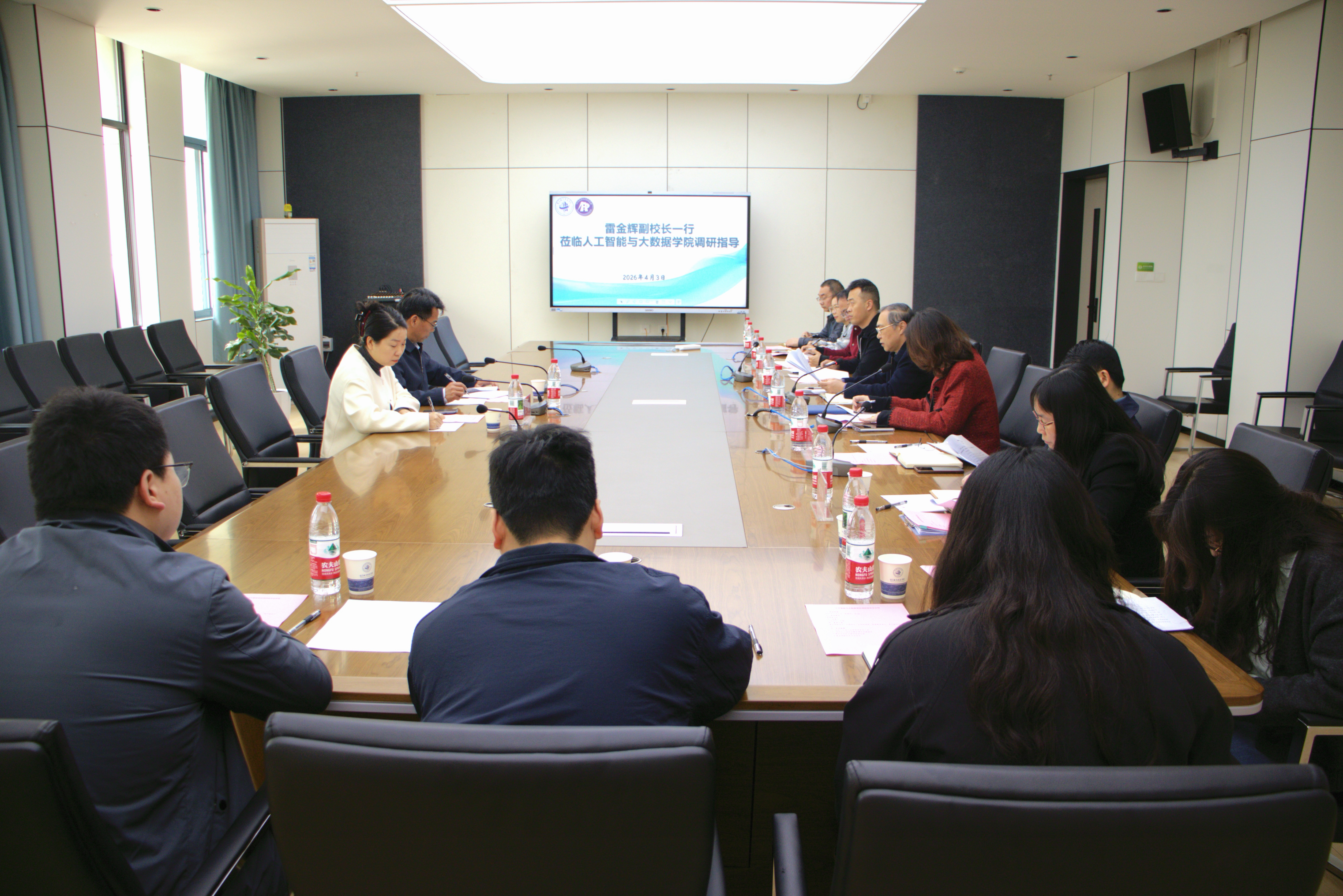 为进一步明晰学院教学建设方向,推动教育教学高质量发展,4月3日,重庆城市科技学院副校长雷金辉、教务处处长王颖赴人工智能与大数据学院调研指导工作。人工智能与大数据学院院长谢显中、行政院长万毅、常务副院长刘嘉敏、副院长符欲梅、党总支副书记唐继龙、院长助理高瑜以及各系部负责人参加会议。调研座谈会在厚德楼705会议室召开,由行政院长万毅主持。 (行政院长万毅主持) (调研会现场) 会议伊始,万毅院长介绍了与会领导及参会人员,聚焦重点教学工作,说明了本次调研座谈会的背景与目的。随后,谢显中院长围绕学院整体建设发展情况作专题汇报,从学科建设、师资队伍、人才培养、科研平台等方面系统介绍了学院近年来的教学成果、工作成效、特色亮点以及未来发展规划。 (谢显中院长作专题汇报) 教务处处长王颖结合学校教学工作实际,从专业结构优化、课程体系改革、教学质量保障等方面作指导交流,为学院下一阶段教学工作的优化提出了建设性意见。 (教务处处长王颖作指导交流) 在听取汇报和交流发言后,雷金辉副校长对学院近年来的发展成效给予肯定。他指出,学院面向国家和区域大数据、人工智能产业发展战略,初步形成了具有自身特色的人才培养体系和专业布局,契合科技发展趋势与产业人才需求,发展前景广阔,希望学院继续深化学科交叉融合,不断巩固和放大差异化优势。 (雷金辉副校长作发言) 会议最后,雷金辉副校长对学院教务工作提出要求,他强调日常教学是人才培养的基础环节,必须常抓不懈、严把质量关,同时要持续加大对学生深造和竞赛实践的培育力度,为他们搭建更广阔的能力提升平台。面向“十五五”发展周期,他建议学院锚定学校建设高水平应用型大学的总体目标,紧抓教学质量,持续深化产教融合,积极拓展校地、校企合作渠道,汇聚多方资源,力争在学科建设、人才培养和科研创新等方面实现新跨越,努力打造成为西南地区人工智能与大数据领域具有鲜明特色的标杆学院。会后,雷金辉副校长一行参观了学院实验室,实地了解实验教学条件与运行情况。 (参观学院实验室) 此次调研座谈进一步明晰了学院下一阶段重点工作的思路与方向。学院将认真贯彻落实学校领导指导意见,坚持以学科建设为牵引、以人才培养为根本,持续深化教育教学改革,推进产教融合协同育人,不断提升学院办学水平和核心竞争力,奋力推动学院事业高质量发展再上新台阶。(传媒中心 高晓兰/编辑)