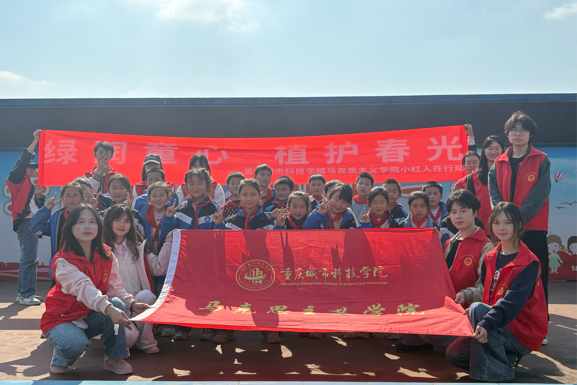 增强少年儿童的生态环保意识与劳动实践能力,在第48个植树节来临之际,重庆城市科技学院马克思主义学院小红人志愿者,向孩子们宣讲植树节的由来、植树造林的生态意义与环保知识。