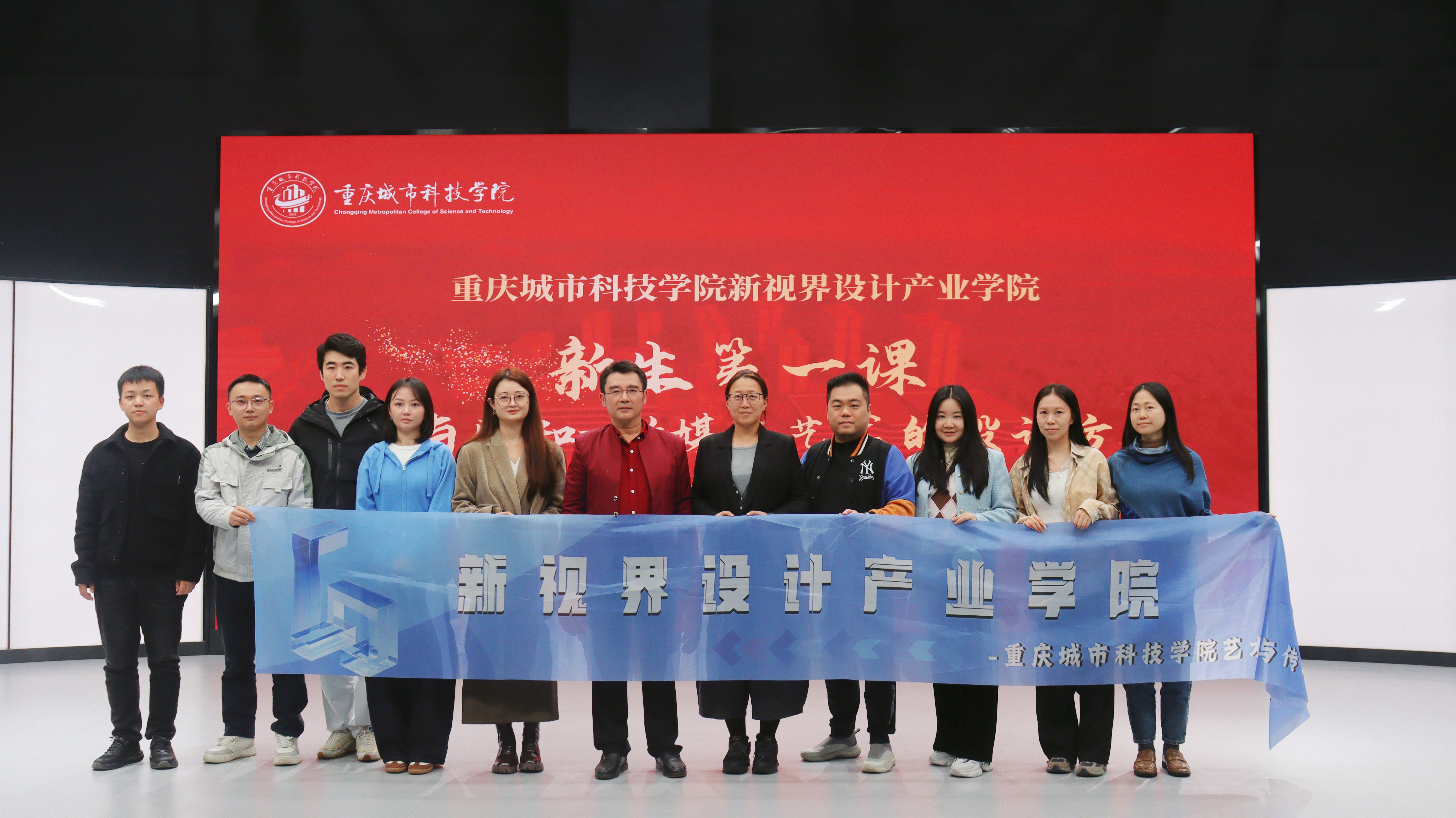 重庆城市科技学院艺术与传媒学院4K演播厅内座无虚席,2025级新媒体艺术专业“新生第一课”在此隆重举行,以《形式设计方法。