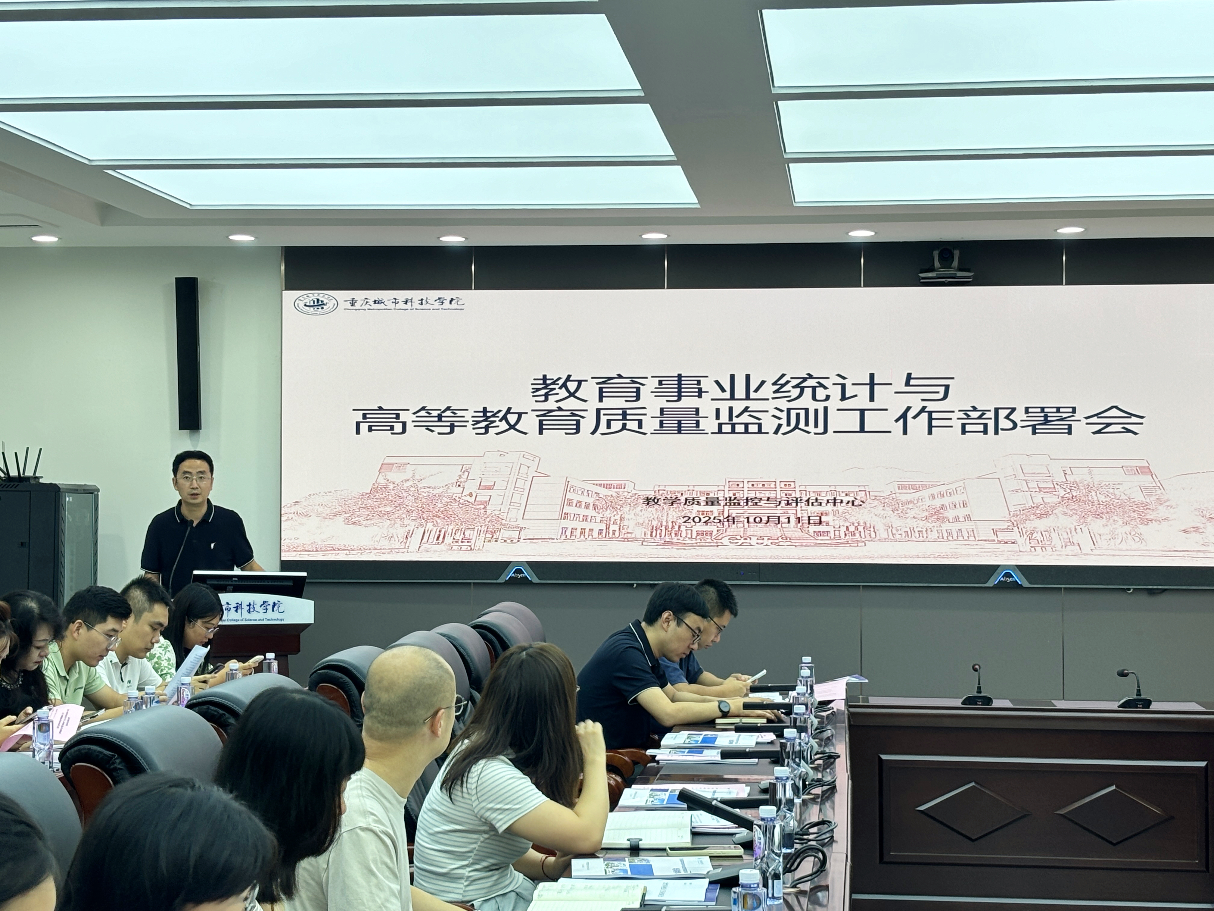 10 月 11 日上午,重庆城市科技学院 2025 年教育事业统计工作、本科教学基本状态数据填报工作部署暨业务培训会在第一行政楼 101 会议室举行。副校长杜元虎,纪委书记、校长助理田妍妮出席会议,党政办公室、人事处、财务处、教务处、科研处、教学质量监控与评估中心、学生处、招生处、现代教育技术中心、图书馆、后勤保卫处、国际学院、继续教育学院、基建工程指挥部、体育与大健康学院等部门负责人及经办人参会。会议由纪委书记、校长助理田妍妮主持。 会上,质评中心主任姚韵首先对 2025 年教育事业统计、本科教学基本状态数据填报的具体工作内容进行部署。他详细阐述了做好数据采集与填报工作的重要意义,强调各部门需全力以赴完成数据采集填报任务,为重庆城市科技学院教学工作各类评估提供坚实的数据支撑与保障。 随后,校长助理田妍妮就教育事业统计工作提出两点要求。一是提高重视程度,强化协同配合。她要求各部门深入学习 “两统”(教育事业统计、本科教学基本状态数据统计)工作相关法律法规,加强对 “两统” 数据指标来源的分析梳理,确保数据源头清晰;二是严守工作纪律,保障数据安全。她指出,“两统” 工作事关学校事业发展全局,核心部门需严格把控填报数据的关联性,各部门负责人要协同二级学院做好统计相关工作,形成工作合力。 副校长杜元虎在总结讲话中强调三点意见。一是深化思想认识,增强责任担当。各部门要充分认识到 “两统” 工作的重要性,将其作为年度重点工作抓实抓细;二是明确责任分工,严守数据逻辑。在本科教学基本状态数据填报过程中,需确保与学校教育事业统计报表相关数据保持一致,严格落实数据逻辑校验要求;三是严把数据质量,确保真实准确。填报部门必须严格遵循 “三审三签” 数据上报制度,坚决杜绝数据弄虚作假行为,保障数据的客观性与真实性,高质量完成本年度数据统计、采集与上报工作。 部署环节结束后,会议进入业务培训阶段。质评中心李文静围绕 2025 年教育事业统计综合调查制度内容、“一表通” 系统操作流程及注意事项进行详细讲解,帮助参会人员掌握统计工作实操要点。质评中心副主任申毓晗则介绍了 2025 年高等教育质量监测国家数据平台采集填报的基本要求,并针对《普通高等学校本科专业监测 “画像” 服务汇编》《2024 数据填报指南(通用篇)(特色篇)》中的重点内容进行解读,为后续数据填报工作提供明确指引。 据悉,高等教育质量监测国家数据平台主要应用于高校本科教育教学审核评估、教学工作合格评估、本科专业认证及评估、办学质量画像与监测预警等工作。教育部教育督导局依托该平台开展数据挖掘研究,为高校绘制教育教学质量画像并实施监测预警,同时生成各校质量监测报告,既服务于政府高等教育治理决策,也助力高校完善内部质量控制机制、实现持续改进。