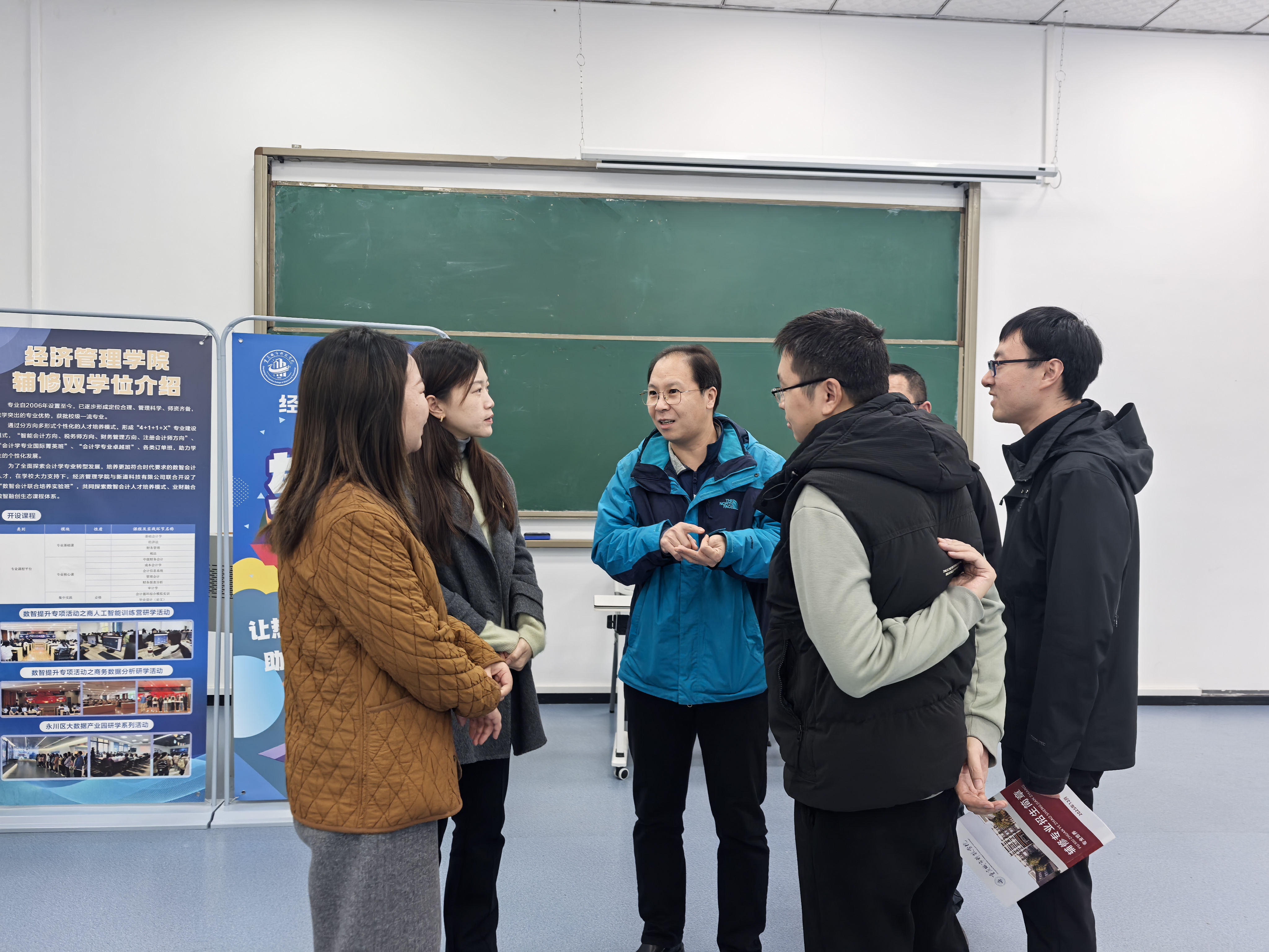 为助力学子拓宽学术视野、培育复合型能力,精准对接个人发展与社会人才需求,12月5日,教务处联合各学院在第三教学楼举办辅修专业现场咨询会。学校领导贾瑞、教务处、学院11个辅修专业教师代表共同参会,2024级、2025级学生积极参与,以“面对面答疑+沉浸式解读”模式搭建高效沟通平台。 咨询会现场氛围热烈,各咨询点前人头攒动。法学、会计学、运动康复、人工智能等11个热门辅修专业教师代表,围绕培养方案、课程设置、修读条件等核心问题耐心讲解,结合“主修+辅修”案例,剖析跨学科背景在考研、就业中的优势。 各学院教师与学生亲切交流,倾听诉求并强调学校对辅修培养的重视,鼓励学子把握跨学科学习机会。教务处老师针对“课程冲突”“报名流程”“学位授予”等共性问题逐一回应,明确教学资源保障等支持措施。 同学们带着疑问积极交流,或驻足聆听或深入探讨。不少学生反馈咨询会有效解答了认知困惑,为学业规划提供重要参考。此次咨询会搭建了师生高效沟通桥梁,明确了辅修价值与方向。学校将持续优化辅修人才培养体系,丰富跨学科资源,助力学子以“一专多能”的成长路径,拓展未来发展空间。(传媒中心 张学强/编辑)