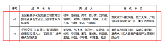 近日,重庆市人民政府发布《关于2025年重庆市教学成果奖励的决定》,重庆城市科技学院《全过程数字化赋能的工程管理类跨专业联合毕业设计教学体系八年实践》与《学科交叉·生态共生·数智赋能:应用型经管人才“四三三”培养模式创新实践》两项成果,双双荣获重庆市教学成果二等奖。这是学校在该奖项上的历史性突破,标志着学校在教育教学改革与创新人才培养方面取得了扎实成效。 成果一:打造数字化跨专业毕业设计体系,树立全国实践教学新标杆 《全过程数字化赋能的工程管理类跨专业联合毕业设计教学体系八年实践》由学校联合重庆大学、广联达科技股份有限公司、重庆文理学院,历经八年共同完成。该成果以建筑业数字化转型为导向,系统构建了“三维联动”的数字化教学内容体系、“跨时空、跨专业”的数字化教学组织模式和“数据驱动、虚实融合”的教学支持平台,实现了前沿技术与毕业设计环节的深度融合。其核心课程《毕业设计(全程BIM跨专业联合)》被认定为国家级一流本科课程,也是目前国内唯一以“毕业设计”命名的国家级金课,具有重要的示范推广意义。 成果二:构建“四三三”模式,培养新时代应用型经管人才 《学科交叉·生态共生·数智赋能:应用型经管人才“四三三”培养模式创新实践》教学成果由学校联合成都文理学院及永川大数据产业园共同完成。该成果聚焦数字经济时代应用型经管人才培养的现实需求,直面传统经管教育中学科整合不足、产教融合不深、教学支撑滞后等突出问题,以“学科交叉、生态共生、数智赋能”为核心理念,创新构建了“四三三”培养模式。通过重构“通识奠基-大类融通-专业精进-技术赋能”四位一体课程体系,打破学科壁垒;打造“专业基础夯实-核心能力强化-产业应用融合”三阶递进实践体系,深化产教融合;搭建“数据链-技术场-供需域”三轴联动教学支持体系,强化数智赋能。历经八年实践,显著提升了经管类学生的复合能力、实践创新能力与就业竞争力,多项教材、课程与项目获省部级以上认定,并在全国多所高校推广。 两项成果的获奖,充分体现了学校在推进教育教学改革、服务区域发展方面的持续努力与创新能力。学校将继续深化教学综合改革,完善高水平应用型人才培养体系,为推动教育现代化与地方经济社会发展作出更大贡献。(传媒中心 高晓兰/编辑)