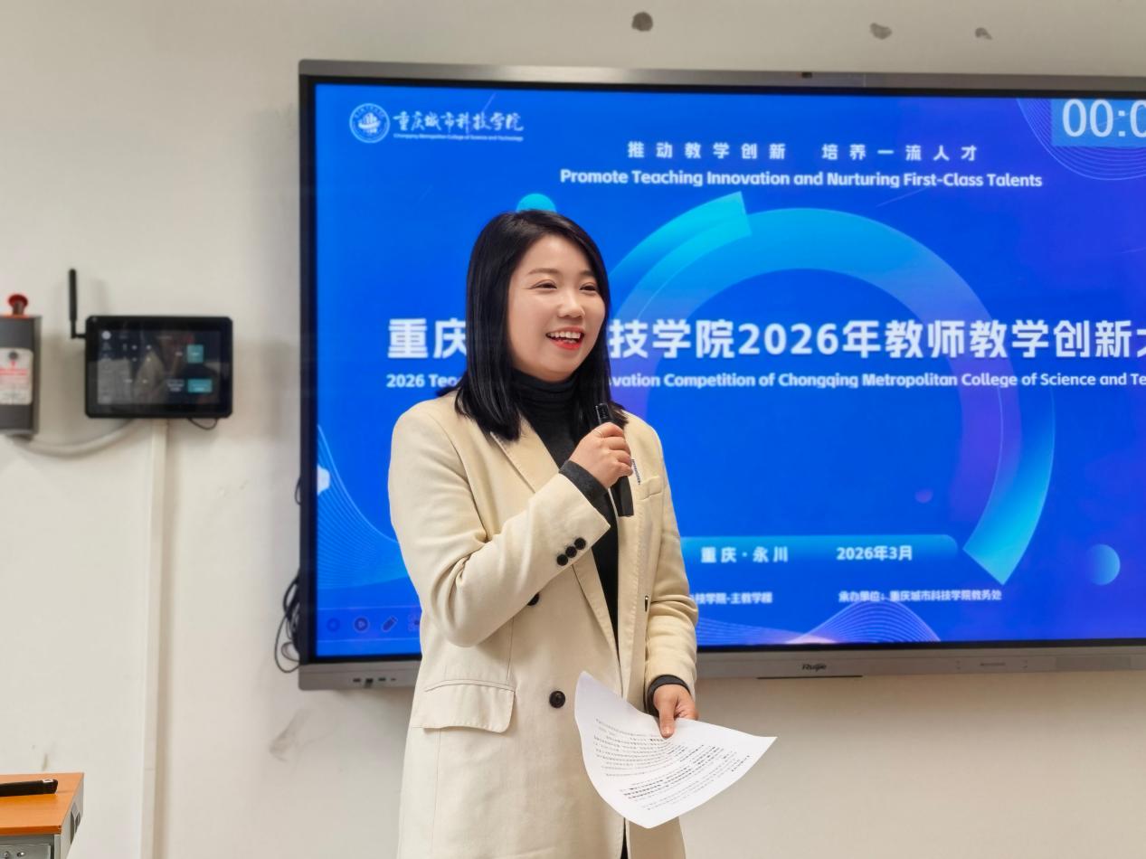 3月18日,重庆城市科技学院2026年教师教学创新大赛在主教成功举办。本次大赛以深化教学创新、提升课堂教学质量为核心,搭建教师教学交流与展示平台,进一步激发教师教学创新活力。比赛于两个赛场同步开展,分别由教务处处长王颖、教务处副处长张玉林担任主持人,特邀评委及全体参赛教师共同参与。 本次大赛紧扣高等教育教学改革方向,赛道覆盖新工科、新文科、基础课程、课程思政、产教融合、人工智能、实验教学,精准对接不同学科专业的教学特点与创新需求。大赛邀请了第五届全国高校教师教学创新大赛(国赛)一等奖获得者周思邑、何静媛,超星信息技术有限公司高级教学设计师刘海莲、课程顾问总监陈佳烈等校外专家,以及校内特邀专家张玲教授、人事处处长刘茜、现代教育技术中心主任周俊成、教务处副处长王肖巍、张玉林担任评委,确保评审的全面性与客观性。 23名参赛教师按抽签顺序依次登台,结合各自课程特色,从课程设计、教学方法、技术融合、思政融入、产教结合等方面进行精彩展示。各赛道教师立足学科专业特点与教学需求,将创新理念与课堂实践深度结合,教学设计各有亮点、特色鲜明,充分展现了学校教师扎实的教学功底和在教学创新领域的积极探索与实践成果。 在赛后的专家点评环节,评委们结合现场教学展示情况,围绕教学理念、内容设计、AI运用、现场表现等核心维度进行综合打分,并对参赛教师的整体表现展开深入、细致的点评。评委们的点评既肯定了各位教师在教学创新中的亮点与特色,也针对教学设计优化、课堂实施落地、创新成果转化等方面提出了精准的改进建议,既有理论高度,又有实践指导意义,为教师们后续的教学反思与创新实践指明了明确方向。 比赛最后,全体评委与参赛教师合影留念,重庆城市科技学院2026年教师教学创新大赛圆满落幕。 本次大赛是学校落实“以赛促教、以赛促改、以赛促创”理念的重要举措,不仅为全校教师搭建了展示教学风采、交流创新经验的优质平台,更进一步营造了重视教学、勇于创新的良好教学氛围。学校将以本次大赛为契机,总结推广优秀教学创新成果,持续深化课堂教学改革,助力教师专业能力提升,不断夯实教学基础、提升人才培养质量,为学校高质量发展注入强劲的教学创新动力。(传媒中心 易雪/编辑)