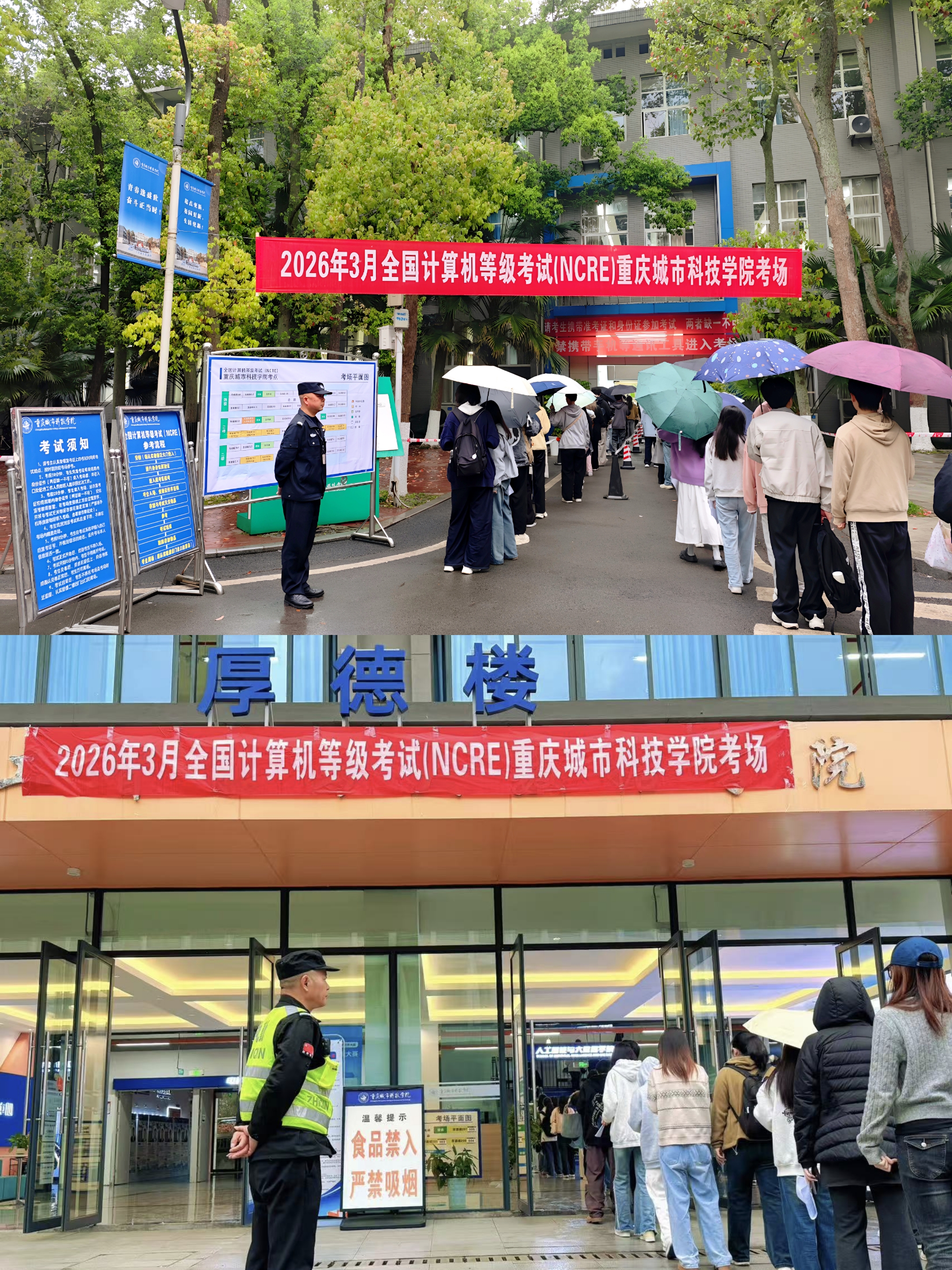 3月28日-29日,2026年3月全国计算机等级考试(简称:NCRE)在学校两校区顺利举行。本次考试设置14个考场,涵盖13个科目,分7个批次,共计3120科次。整个考试过程平稳、安全,考场秩序井然。 学校高度重视本次考试,严格遵照上级部门的相关规定与工作要求,认真贯彻落实有关文件精神,学校专门成立副校长雷金辉任永川校区主考和校长助理、巴南校区党工委书记、常务副主任崔继昌任巴南校区主考的考试工作领导小组,全面统筹组织、协调与监督工作。教务处协同现代教育技术中心、后勤保卫处、建筑管理学院、人工智能与大数据学院等部门,在考务组织、技术支持、考场布置、试卷保密、应急处理、安全保卫,明确分工、协同配合,保障各项考务工作有序推进。 NCRE采用计算机化考试形式,对服务器、网络、计算机等设备要求较高。考前两天,教务处会同现代教育技术中心、建筑管理学院、人工智能与大数据学院分校区进行了系统安装、考试环境检测、模拟测试、考场布置等工作。考前一天,教务处组织召开两校区监考(考务)人员培训会,围绕试卷安全保密要求、人脸识别身份核验、考试流程、监考(考务)职责、应急处置、违纪舞弊防范等方面对与会人员进行了培训;现代教育技术中心组织召开两校区系统(机房)管理员培训会,围绕机房准备、服务器设置、考试机测试、考试数据回收、异常数据处理等方面对与会人员进行了培训,严格做到培训到位、考核合格,才能上岗。 考试当日,全体工作人员准时到岗就位。各部门各司其职、协同合作,严格按照考试流程有序推进各项工作。副校长雷金辉,校长助理、巴南校区党工委书记、常务副主任崔继昌,教务处处长王颖、副处长杨明静,现代教育技术中心主任周俊成,后勤基建保卫处副处长杨全分别深入两校区,对考场通道设置、考生人脸识别身份核验、考场安检、考试实施等进行了检查指导,工作人员认真履职,考场秩序井然,考风考纪端正。重庆市教育考试院督考对学校两校区考试实施情况进行了巡视和检查,并对学校全国计算机等级考试的组织与管理工作给予了高度肯定。 全国计算机等级考试,是经教育部批准,由教育部教育考试院主办,重庆市教育考试院组织管理,面向社会,用于考查应试人员计算机应用知识与技能的全国性计算机水平考试,受到社会广泛关注和认可。此次考试的顺利进行,不仅为广大考生提供了安全有序、舒适便利的考试环境,也展示了学校在组织机考考试和管理方面的能力和水平。学校将坚持“以生为本”的服务理念,持续优化考务管理,为培养高素质应用型人才贡献力量。(传媒中心 张学强/编辑)