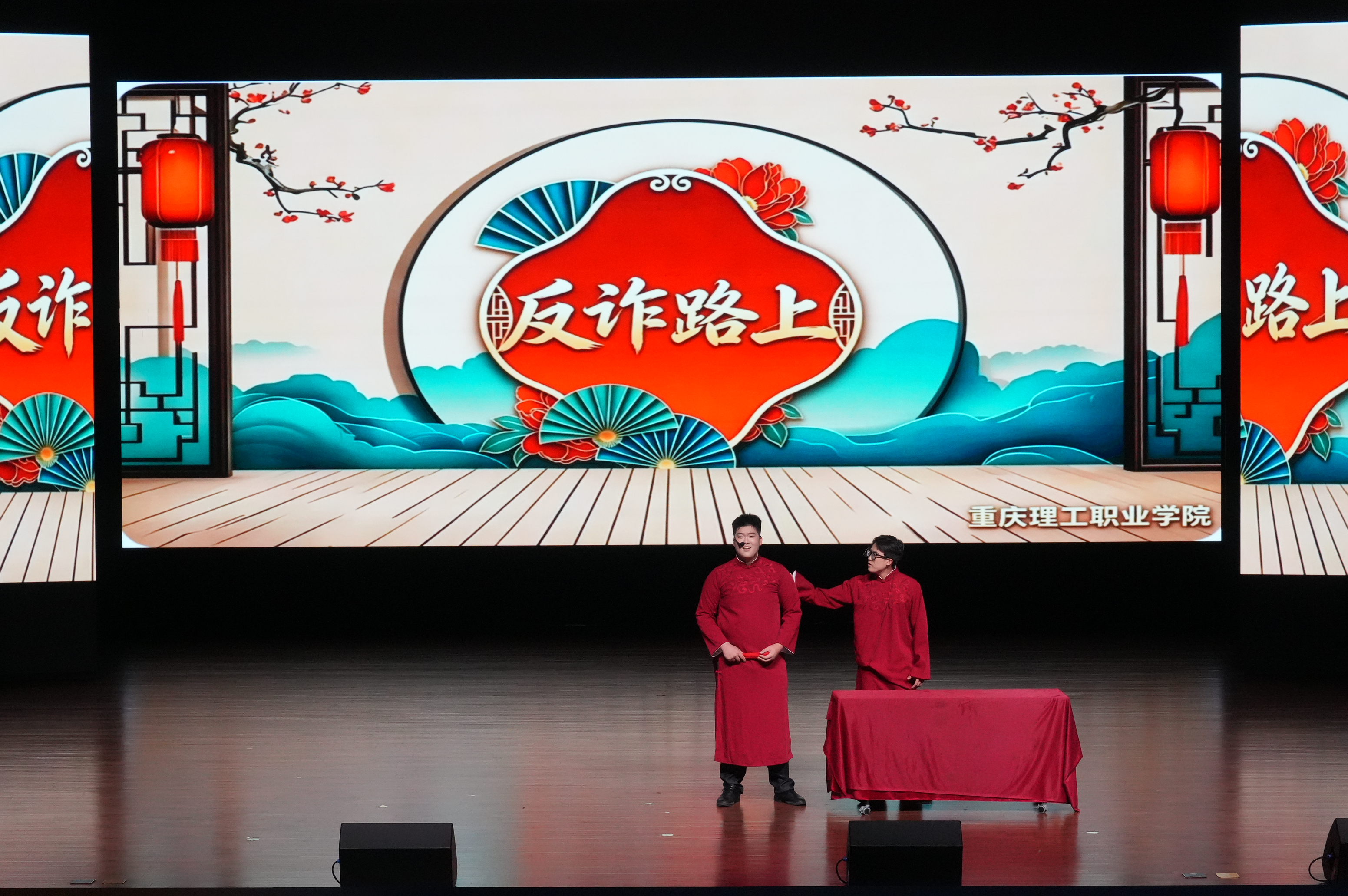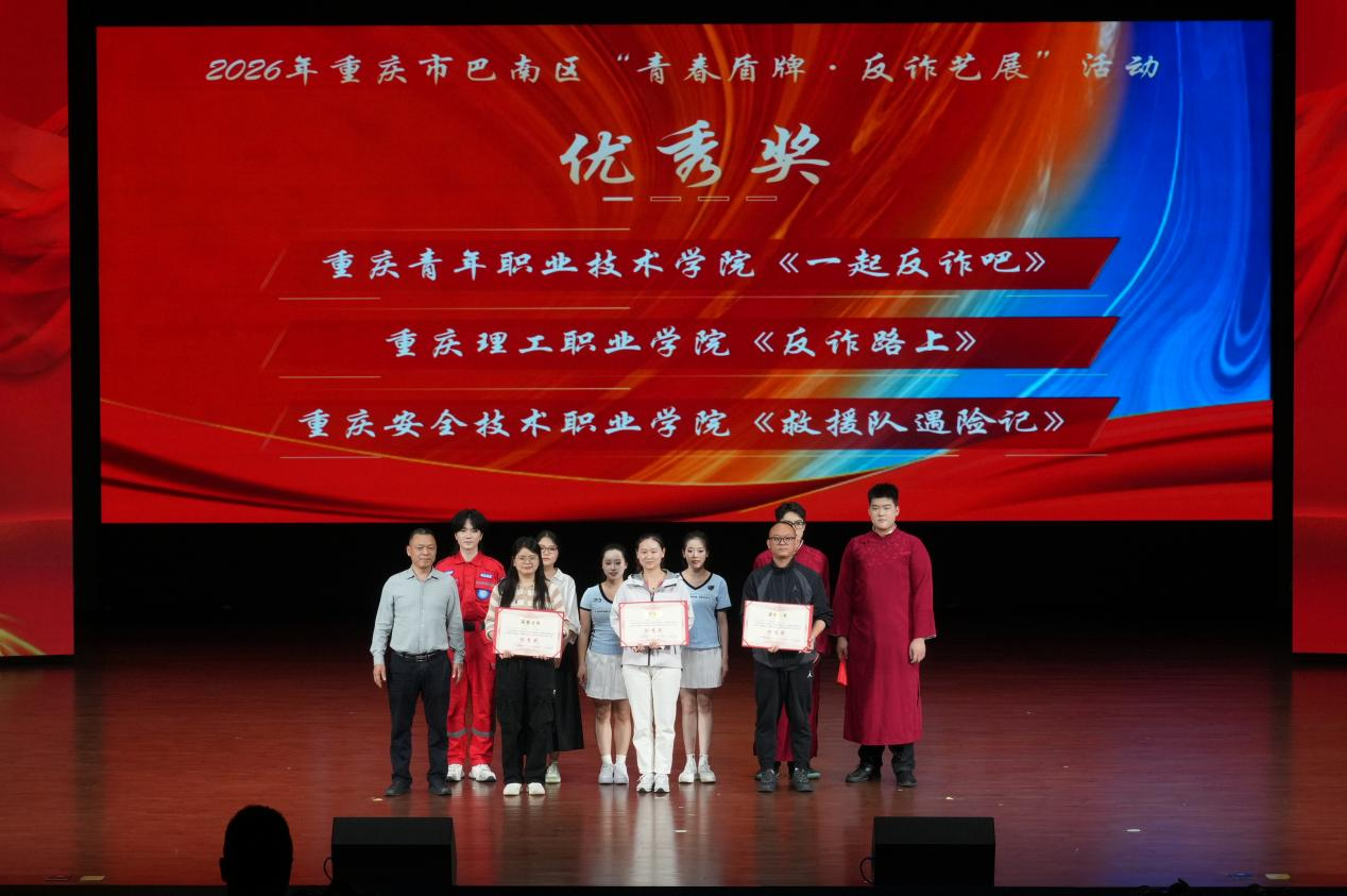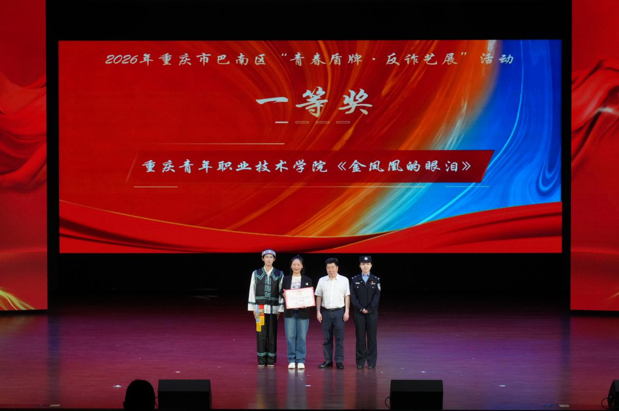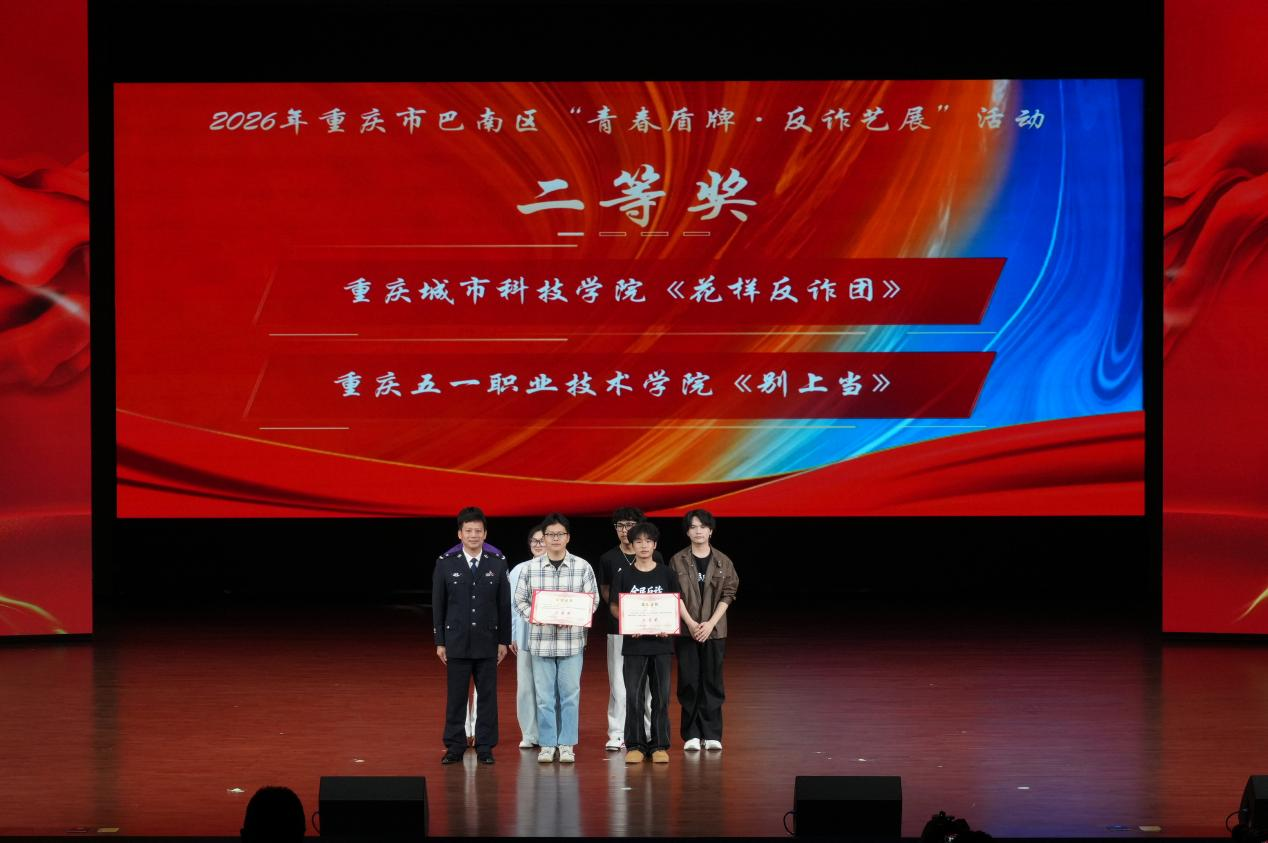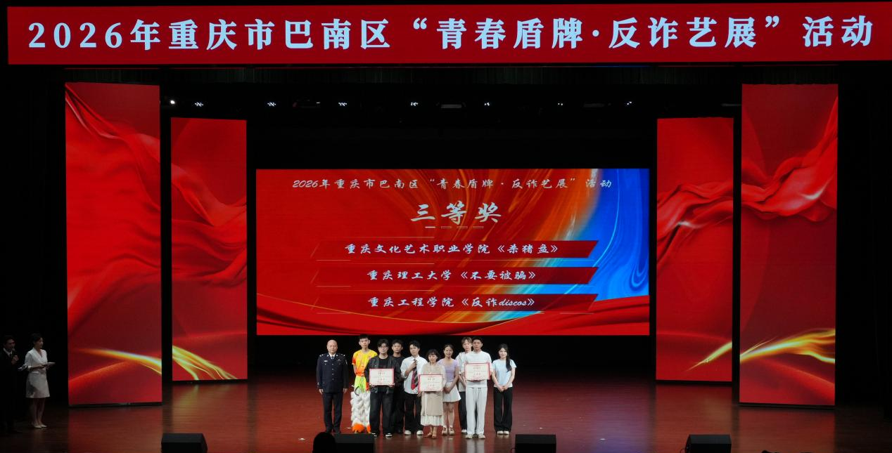 当前,电信网络诈骗手段层出不穷,高校师生成为易受骗重点群体之一。为切实提升反诈宣传实效,深化校园安全教育,4月14日,由中共重庆市巴南区委政法委员会、重庆市公安局巴南区分局、重庆市巴南区总工会联合主办,重庆城市科技学院协办的2026年重庆市巴南区“青春盾牌·反诈艺展”决赛在重庆城市科技学院巴南校区报告厅举行。活动以青春特色为抓手,将艺术表达与反诈知识深度融合,让青年学子站上舞台,打造了一堂生动鲜活的“反诈公开课”。 活动正式开始前,巴南区委常委、宣传部部长陆多祥,巴南区委常委、区委政法委书记冉仁均,重庆市公安局刑侦总队党委副书记、政委冉义智,巴南区公安分局党委副书记、政委刘志勇,巴南区总工会党组书记、副主席李天明一行实地考察重庆城市科技学院巴南校区警校共建成果,重点调研校园警务室运行及反诈宣传成效。领导一行听取了学校反诈工作的整体介绍,参观了学校学生创作的反诈海报、玩偶等文创设计作品,了解了大学生志愿调解队开展的反诈流动站、反诈宣讲、校园巡逻等特色活动,并走进校园警务室。该警务室功能分区明确,集接警受理、纠纷调解、便民服务于一体,构建起三项核心机制:“校园110”实行24小时值守,确保警情第一时间到场处置;“1、3、5”应急处突机制,专业应急队伍全天候备勤,筑牢校园安全防线;多元化反诈宣传机制将专业警务力量与学生志愿队伍有机结合,形成“线上+线下、静态+动态、专业+志愿”的立体宣传矩阵,实现反诈知识全覆盖。 舞动活力 青春启幕 由重庆城市科技学院带来的快闪与开场舞《快乐小马》率先点燃全场,动感的旋律与蓬勃的朝气交相辉映,瞬间营造出热烈而富有感染力的氛围,正式拉开了本次反诈艺展的序幕。 随后,主持人姚思远、闫雪婷向现场观众介绍了本次活动的主题与呈现形式。反诈宣传不应停留在纸面上,而应走进舞台、走近青年、走入人心。本次活动采用情景剧、舞台剧、说唱等多种艺术形式登上舞台,将复杂抽象的诈骗套路,转化为看得见、记得住、想得深的鲜活故事。 赛程详解 公平开赛 主持人详细介绍了本次活动的赛程安排与评分细则。共有9支高校参赛队伍同台竞技,围绕刷单返利、冒充客服、情感诈骗、“杀猪盘”、校园贷等高发骗局,以多种多样的艺术形式生动拆解诈骗套路。比赛共分三轮进行,每三支队伍展演后穿插互动环节。 第一轮展演:三支队伍精彩亮相 首先登台的是重庆安全技术职业学院带来的《救援队遇险记》,还原看似平常却暗藏陷阱的诈骗案例,警示观众冷静辨别。重庆青年职业技术学院带来的《一起反诈吧》以歌舞形式呈现,将诈骗套路层层剥开,令其无所遁形。重庆理工大学带来的说唱节目《不要被骗》,将反诈知识与青春节拍相融合,让反诈提醒更易入耳、入脑、入心。三组作品各具特色,展现了青年学子在反诈宣传中的责任感和创造力。 第三轮展演:再掀舞台高潮 重庆五一职业技术学院以乐队形式演绎《别上当》,将反诈知识融入动感旋律,用音乐传递警惕之声。重庆工程学院以歌舞形式演绎《反诈discos》,用充满活力的舞台语言将反诈理念融入轻快时尚的表达。重庆文化艺术职业学院以说唱加伴舞的形式演绎《杀猪盘》,揭示了情感骗局从信任建立到财产转移的完整链条,告诉大家理性判断与冷静核实永远是最有效的防线。 第三轮展演:压轴大戏精彩纷呈 重庆城市科技学院以舞蹈加情景剧形式演绎《花样反诈团》,用舞台上的角色联盟传递现实中的共同守护,诠释了反诈需要学校、家庭、社会和每个个体协同发力的深刻理念。重庆青年职业技术学院以情景剧形式演绎《金凤凰的眼泪》,用泪水背后的代价与反思,警示观众在面对感情骗局时,唯有保持理性与清醒,才能识破诈骗分子的真实意图。重庆理工职业学院以相声形式演绎《反诈路上》,将反诈知识融入说学逗唱,让观众在笑声中思考、在幽默中警醒,为整场展演画上圆满句号。 特别节目《反诈课堂》 九支队伍展示结束后,巴南区公安分局民警为现场师生带来了一场特别的节目——《反诈课堂》。民警以课堂为场景,登上舞台化身“反诈讲师”,用通俗易懂的语言系统拆解各类诈骗套路。节目融合歌唱、情景剧、相声等多种艺术形式,针对家庭诈骗、情感诈骗、网络诈骗等高发场景进行生动还原。节目最后进行了反诈知识问答互动,现场观众踊跃作答,民警为大家送上了精美礼品,进一步点燃了全场的反诈热情。演教结合、笑中有思,这种寓教于乐的展示方式,让反诈知识真正入脑入心,赢得现场阵阵掌声。 幸运抽奖 反诈相伴 在比赛和展演的间隙,活动设置了三轮激动人心的抽奖互动环节,大屏幕随机滚动座位号,幸运观众逐一揭晓,现场欢呼声与掌声此起彼伏。三轮抽奖不仅有效缓解了比赛的紧张节奏,更在轻松愉悦的氛围中激发了师生的参与热情,让反诈宣传在互动中更具温度、更入人心。 成绩公布 评委点评 评委代表巴南区融媒体主任邓涛进行点评,从主题深度、艺术表现力、反诈教育价值等维度充分肯定了各队伍的创意亮点,以“有才有范”概括同学们的精彩演绎,表扬此次展示的作品摒弃了空洞说教,以多样的形式讲述反诈案例,让反诈知识入脑入心。邓主任还寄语同学们争做反诈宣传的践行者与守护者,共同维护财产安全
